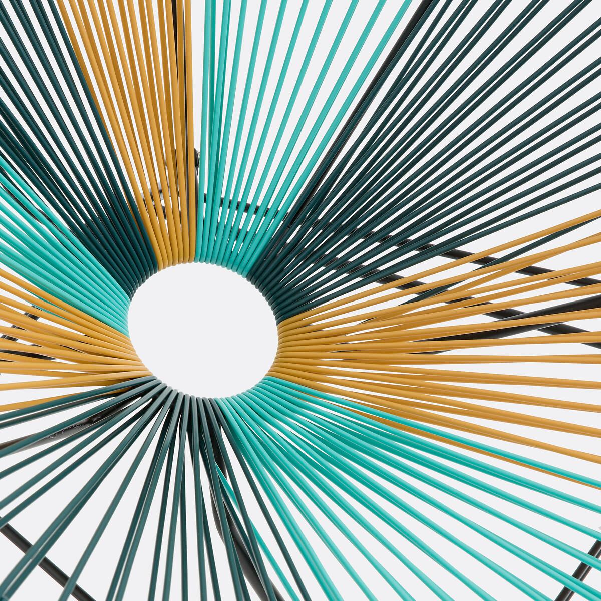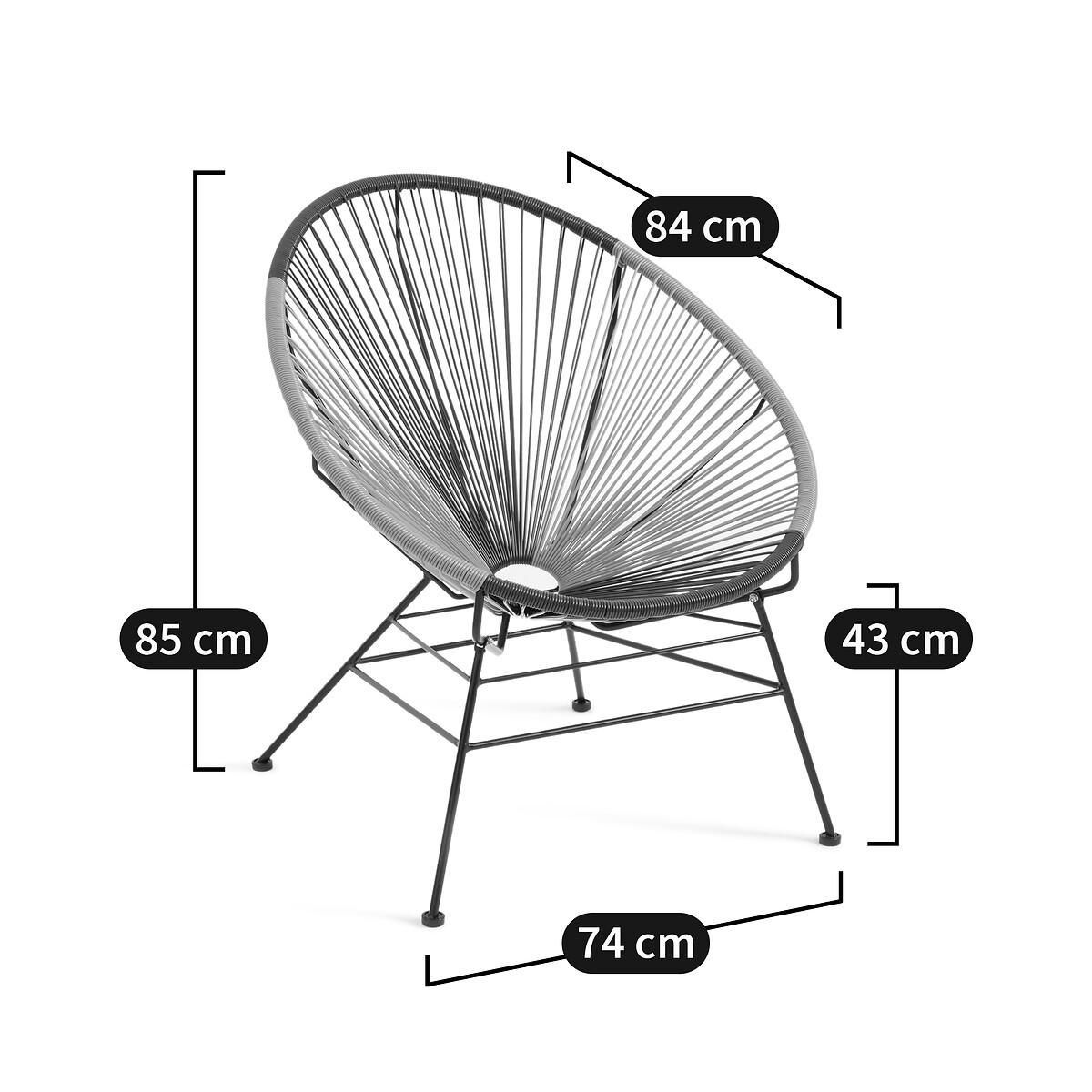 Its metal structure, covered in coloured resin gives Selya a modern design, combining comfort and aesthetics. Perfect for creating a relaxation area in your garden or on your terrace. Product Details • Black tinted iron structure with epoxy finish • Polyethylene resin braiding. Dimensions • Width: 74cm • Height: 85cm • Depth: 84cm • Height of legs: 43cm • Weight: 7.9kg. Dimensions and weight of parcel1 parcel • L42.5 x H95 x D74.5cm. 11kg.