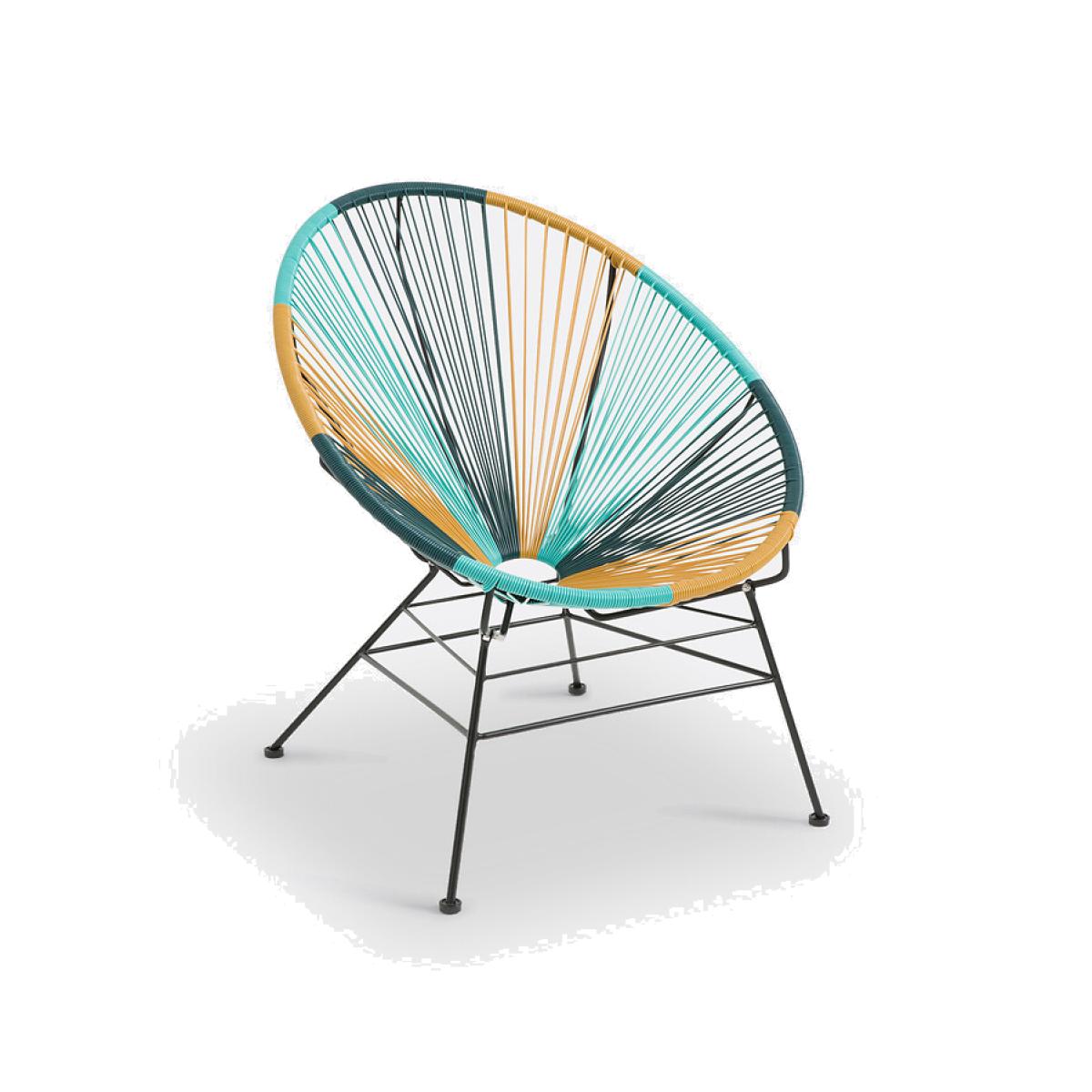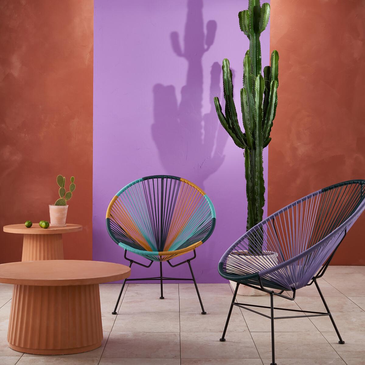 I love this garden chair for its contemporary yet relaxed vibe, perfect for adding a pop of colour and texture to outdoor spaces. Its woven resin design combines durability with a breezy aesthetic, making it ideal for patios, balconies, or even a sunroom. It works particularly well in informal or boho-inspired interiors, where you want a statement piece that doesn’t take itself too seriously. For styling tips, pair it with neutral cushions and soft textiles to tone down the vibrant colours, or layer with potted greenery for a lush, inviting atmosphere. It’s a versatile accent that can bring a fresh, summery touch to both contemporary and eclectic outdoor or indoor zones.