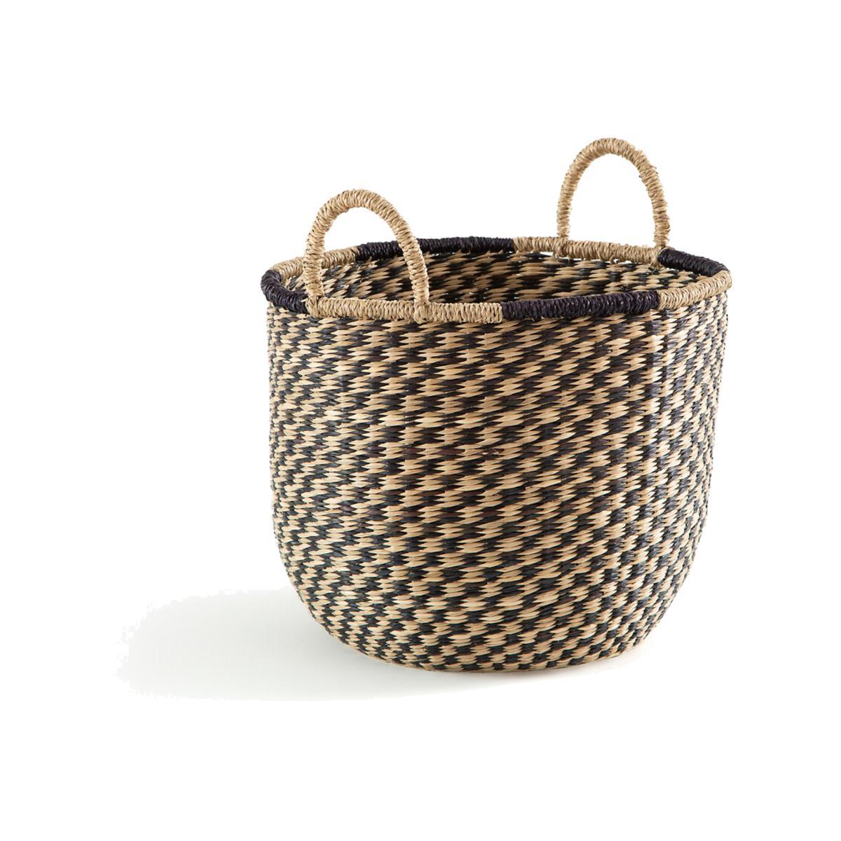 A black and natural checkerboard design in woven straw. This charming basket can be used for storage, or as a flower pot. Have fun! !