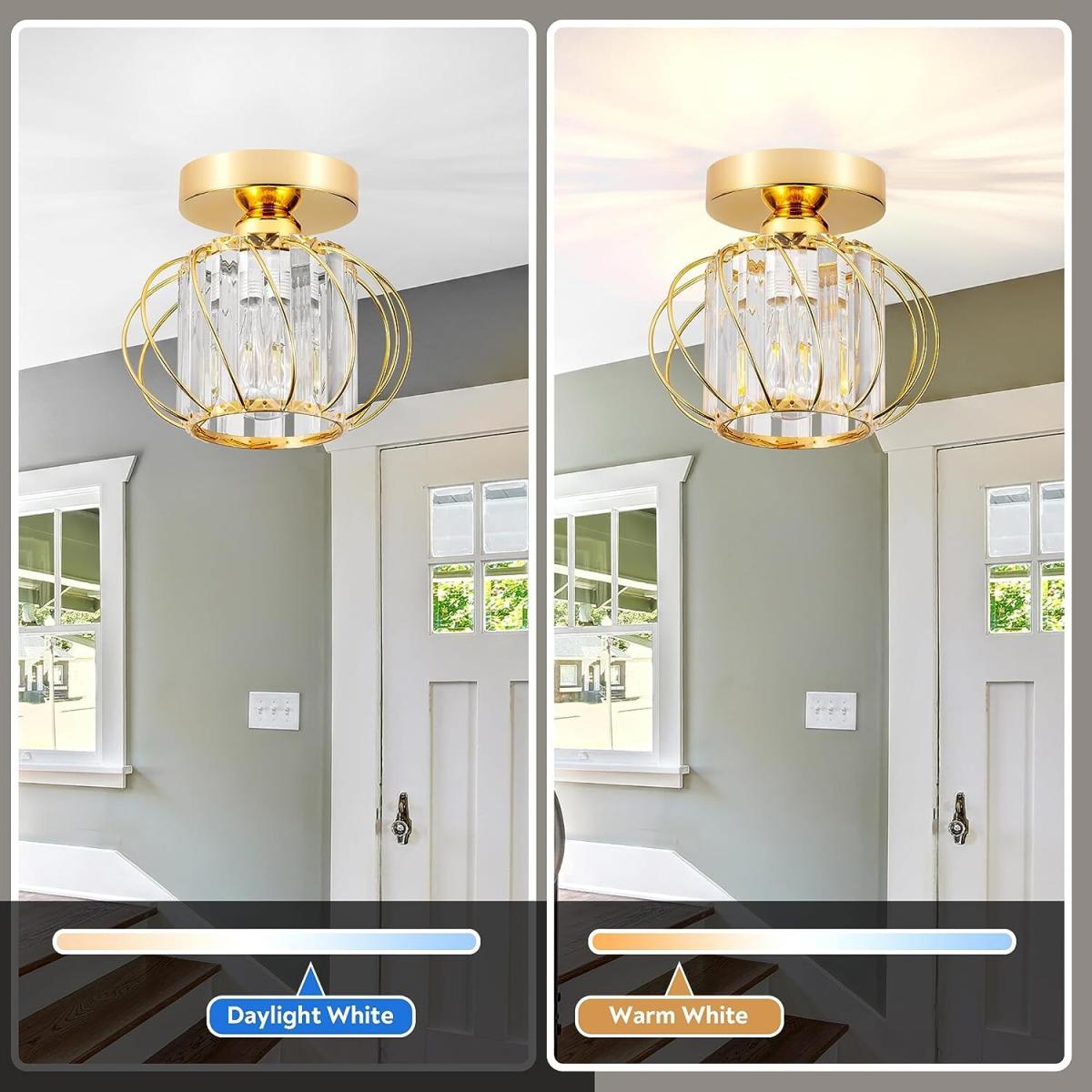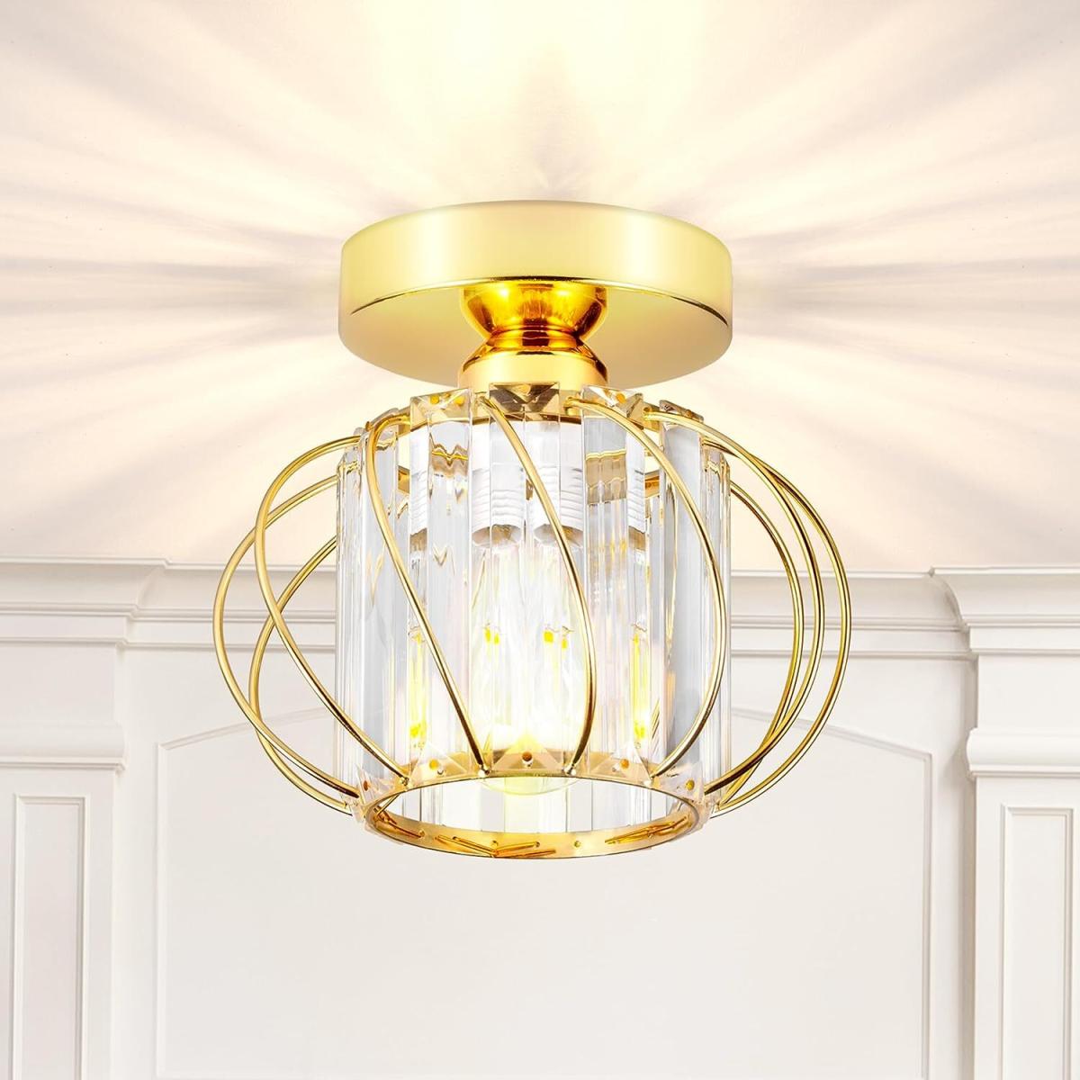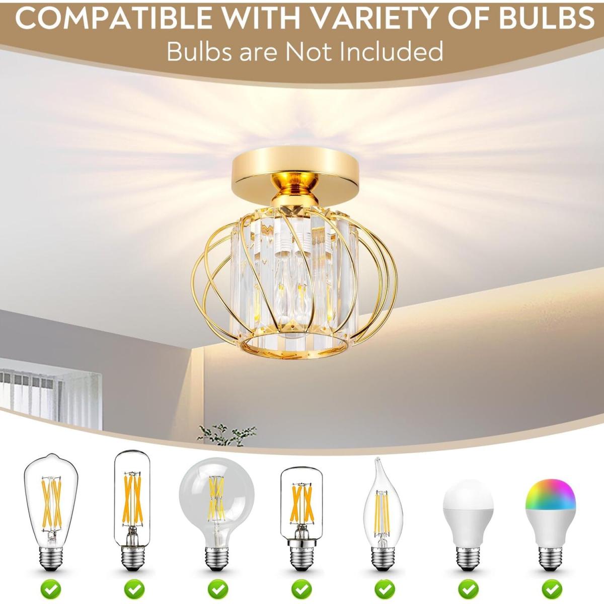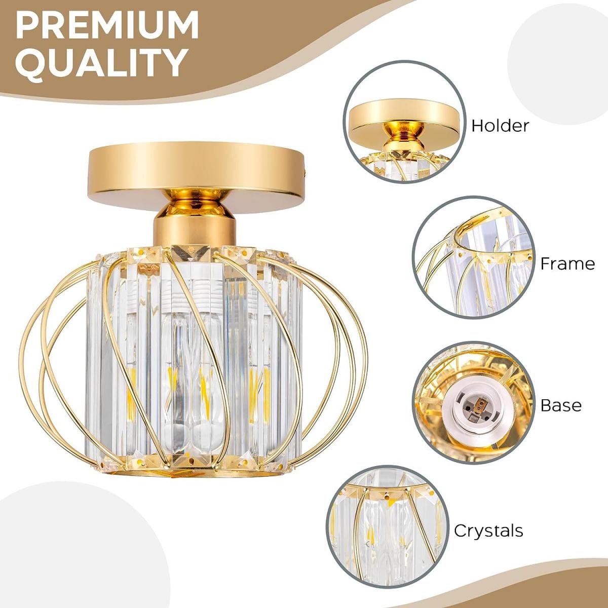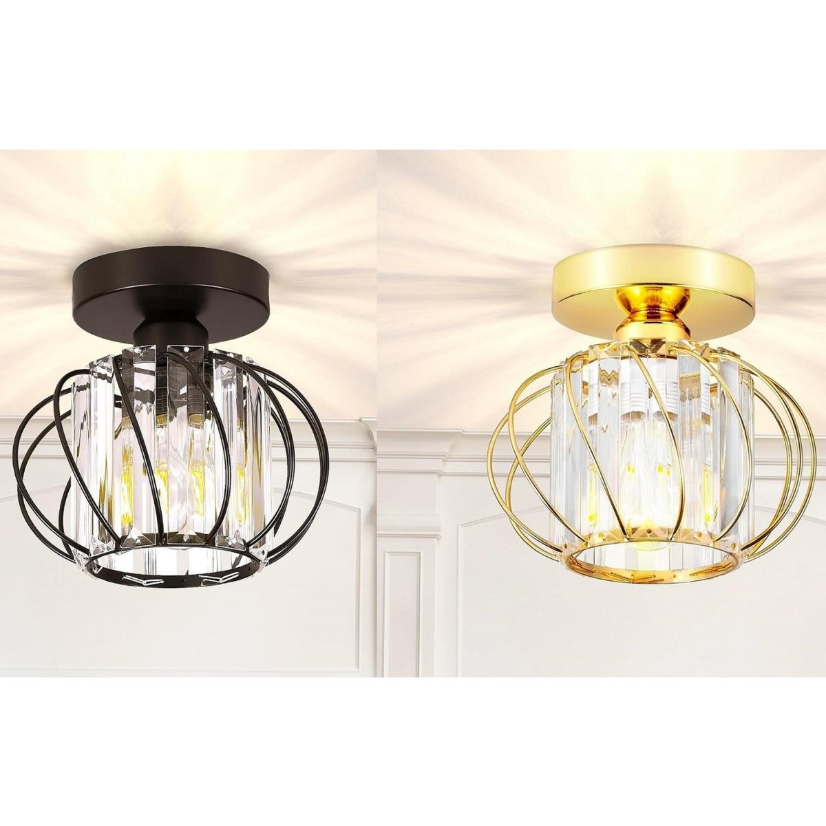 Elevate your living spaces with the Giggi Crystal Ceiling Light. An elegant semi-flush round Black Or Gold ceiling light that adds a touch of luxury. Perfect ceiling lights for bedroom, living room lights, kitchen lights ceiling, and hallway ceiling lights, creating a dazzling focal point. The ceiling provides flexibility & ease with an E27 base for light fittings ceilings & a detachable premium K9 crystal chandelier lamp shade. Use any E27 screw bulb (bulbs not included), from smart bulbs to LED, retro, incandescent etc. and indulge in various cosy ambiences illuminated by stunning crystal reflections.