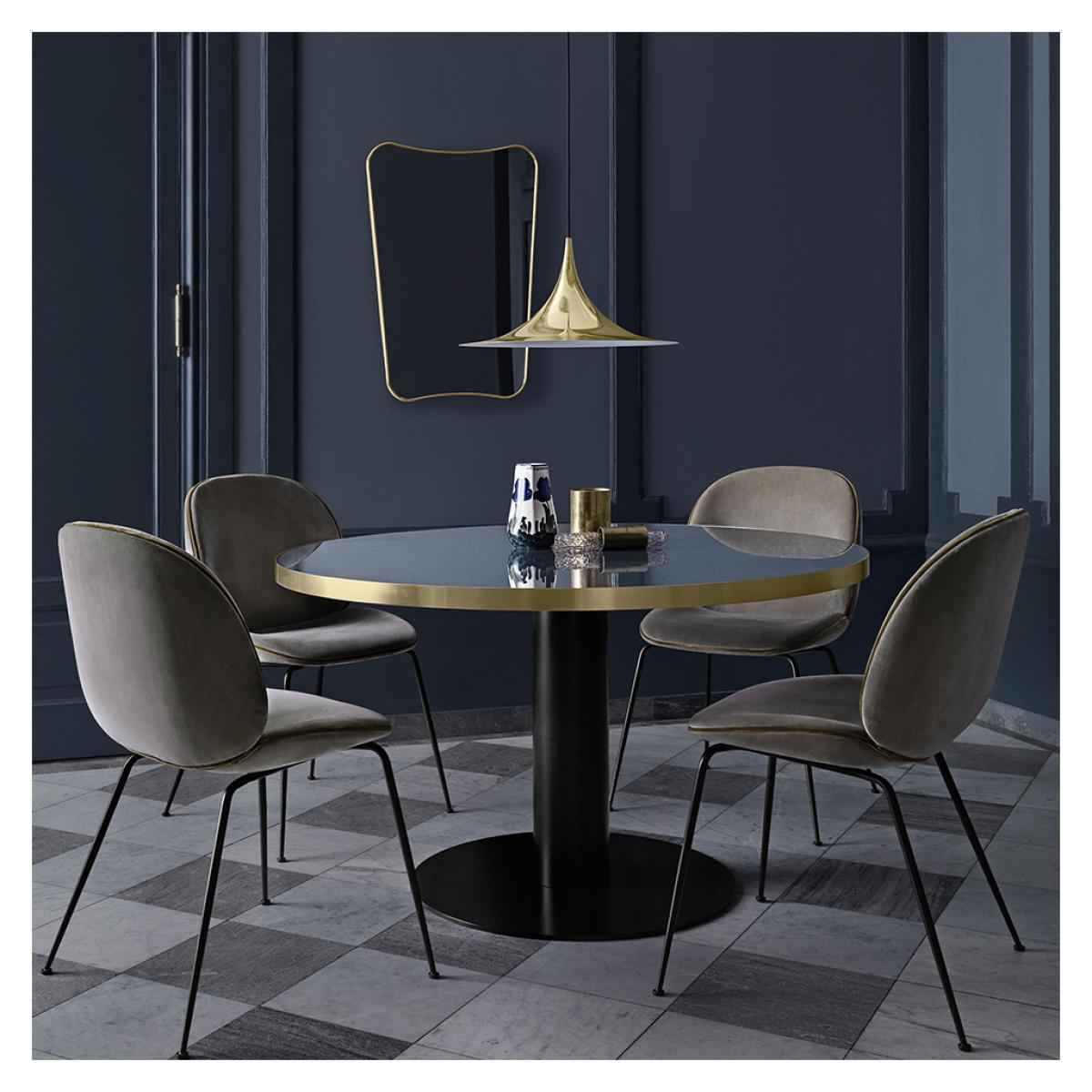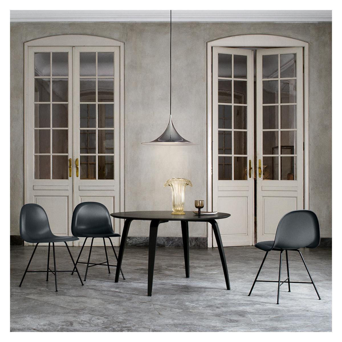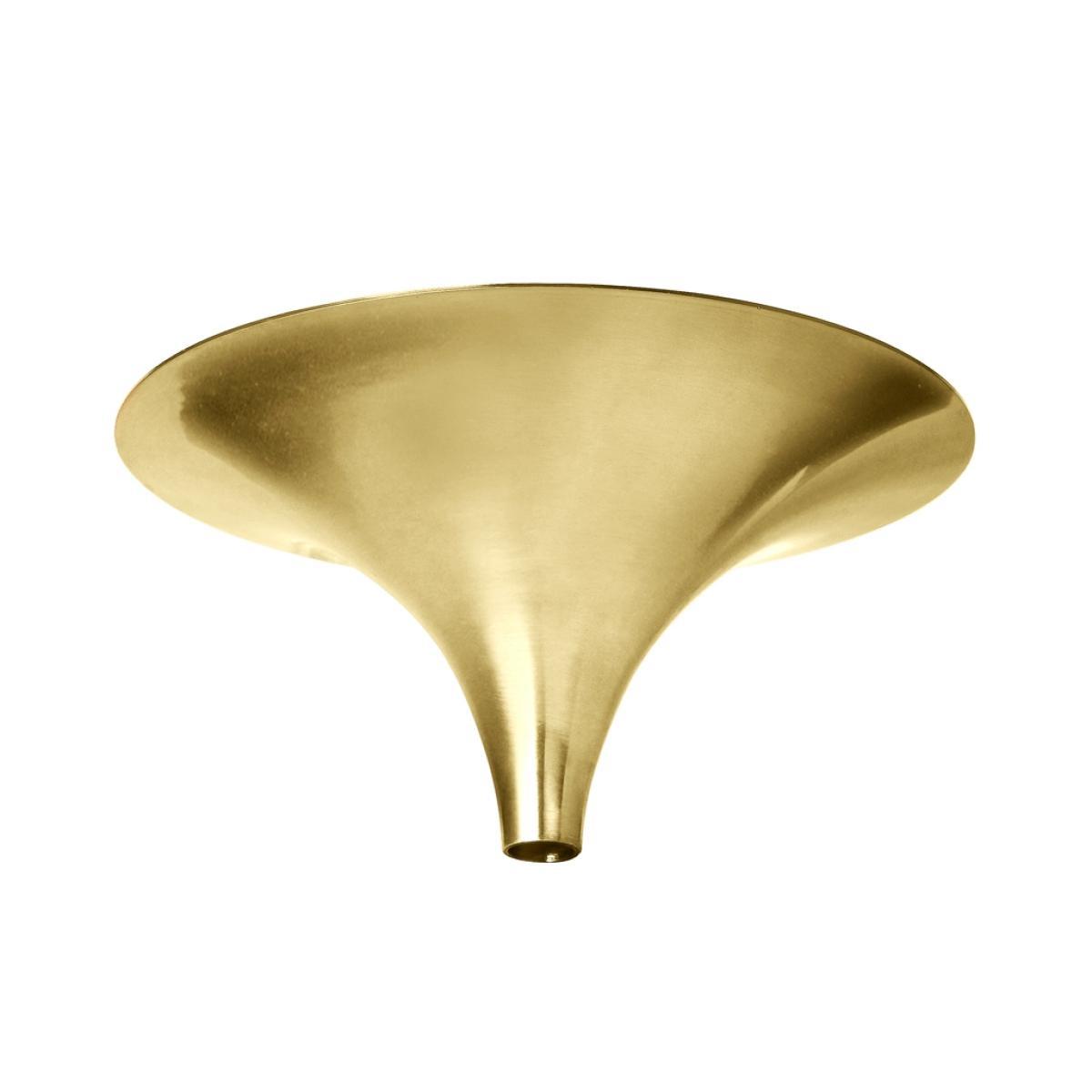The iconic shape of the large Semi Pendant Light in brass was conceived by placing two crescent shapes back to back to create a distinctive arch form. Hand-spun in aluminium and finished in brass, the elegant Semi Pendant Light hangs from a bold black cord. The conical shape of the light casts a direct downward glow, making it ideal for over work surfaces or dining tables. Designed by Claus Bonderup and Torsten Thorup and produced by Gubi, the lightness of form and timeless design of this distinctive light meant that it achieved huge worldwide success during the 1980s, when it achieved the status of best-selling Danish design. Requires: 1 x Max 60W Silver Crown Reflector bulb (included)