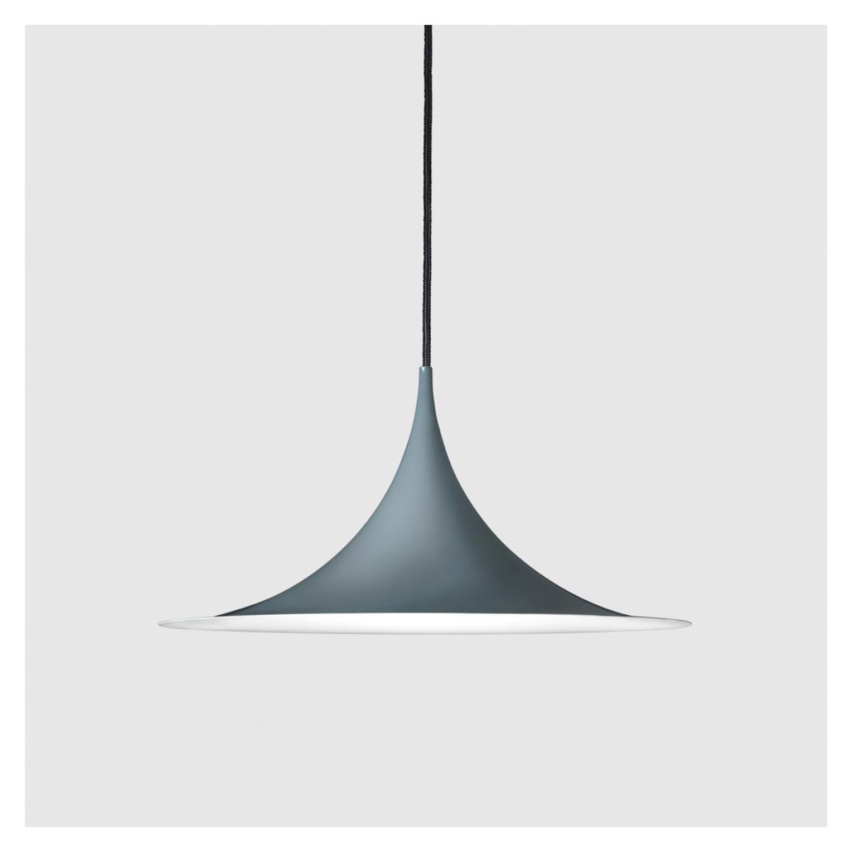 The iconic shape of the medium Semi Pendant Light in an anthracite grey hue was conceived by placing two crescent shapes back to back to create a distinctive arch form. Hand-spun in aluminium and finished in glossy anthracite enamel, the elegant Semi Pendant Light hangs from a bold black cord. The conical shape of the light casts a direct downward glow, making it ideal for over work surfaces or dining tables. Designed by Claus Bonderup and Torsten Thorup and produced by Gubi, the lightness of form and timeless design of this distinctive light meant that it achieved huge worldwide success during the 1980s, when it achieved the status of best-selling Danish design. Requires: 1 x Max 60W E27 half-mirror max bulb Discover the rest of the Semi Pendant collection