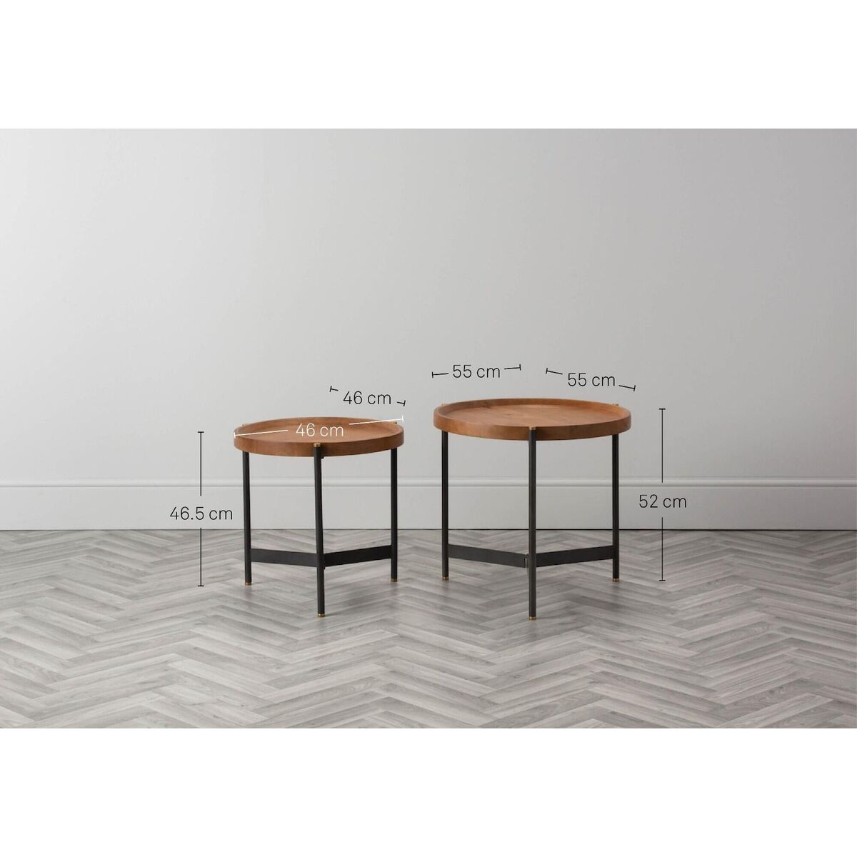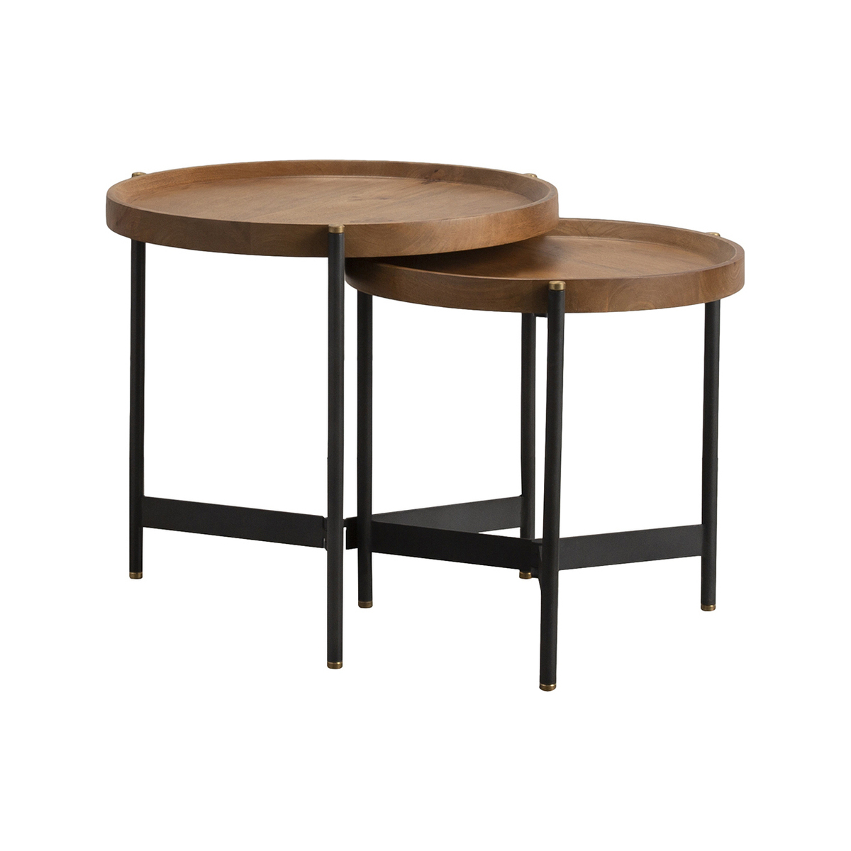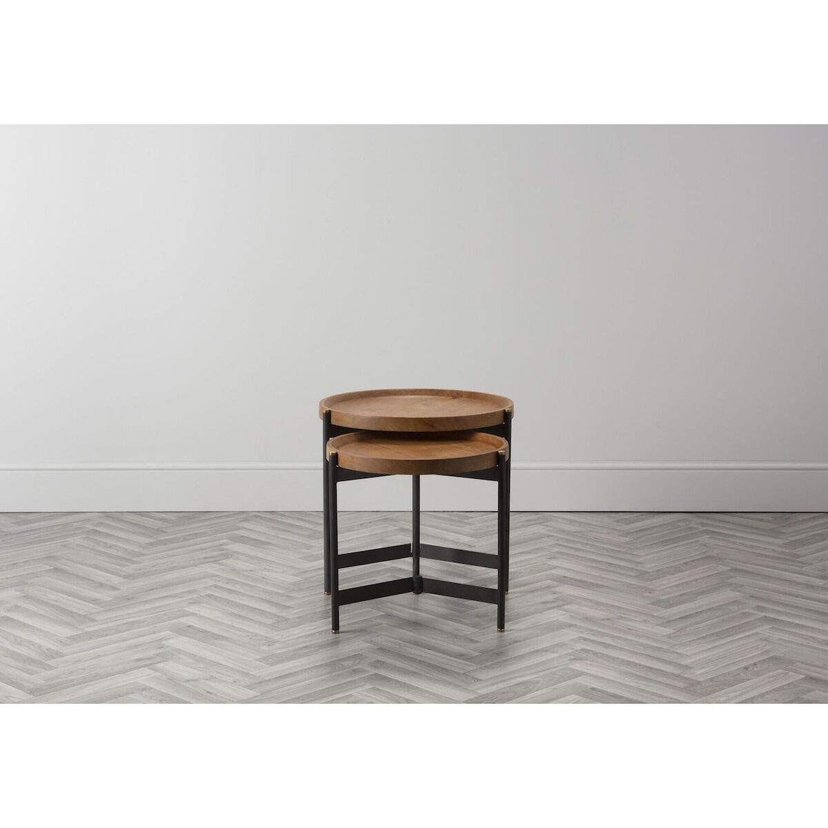 Industrial style is here to stay and the Seneca Mango Nesting Tables are a beautiful choice to bring the trend into your home. This set is brimming with textural interest, featuring an iron base, with golden tips, that has been topped with a tray style mango wooden table top. The Seneca nesting tables balance form and function and will look splendid in a contemporary living room, displaying a colourful vase and your favourite portraits, or scattered throughout the house for style continuity. Additional Information:. Dimensions: H:52cm x W:55cm x D:55cm & H:46. 5cm x W:46cm x D:46cm. Materials: 40% Mango Wood, 60% Iron. Assembly: Fully Assembled, fitted with adjustable screw feet.