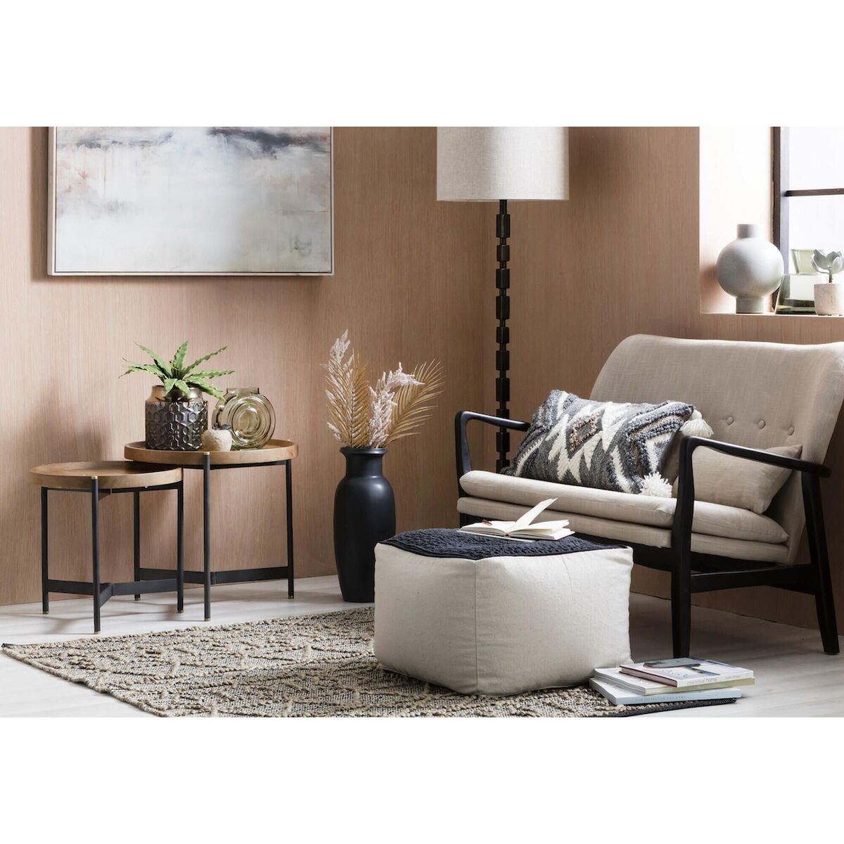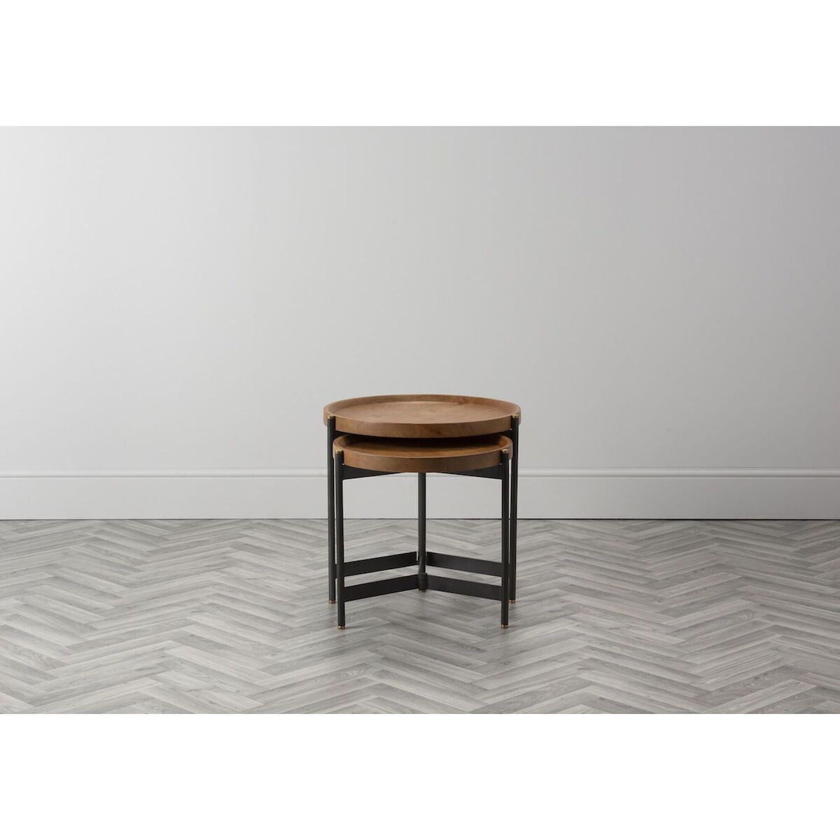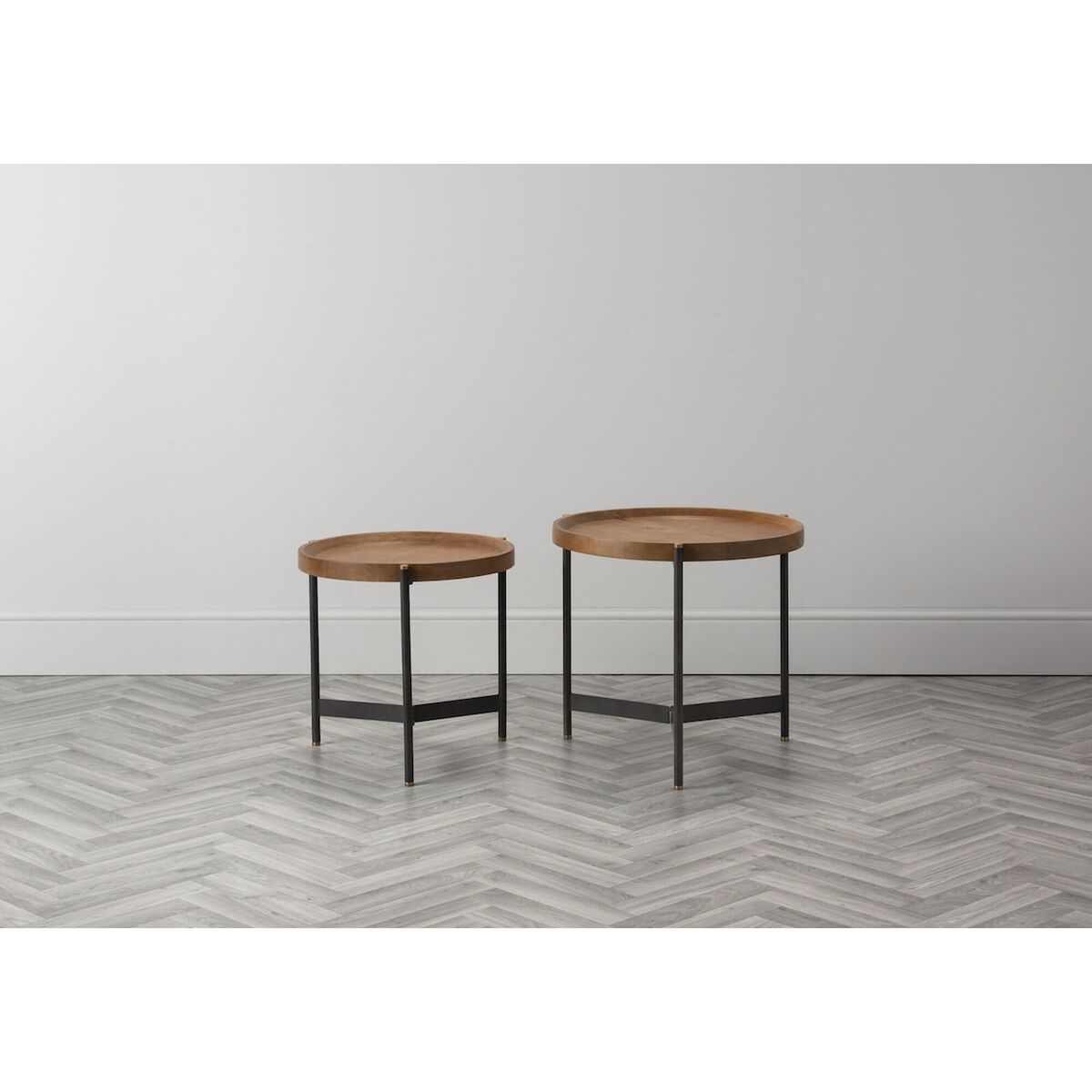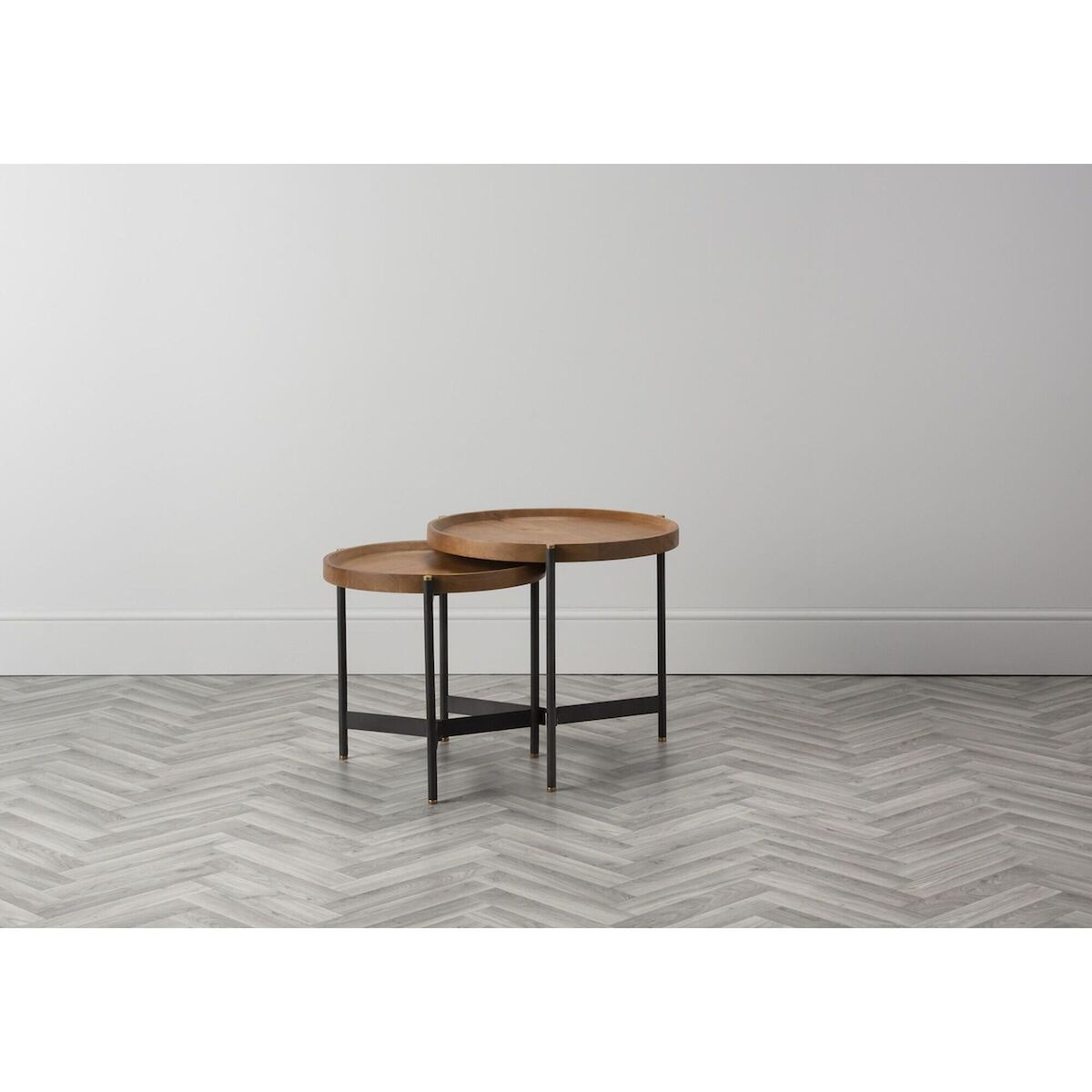 Industrial style is here to stay and the Seneca Mango Nesting Tables are a beautiful choice to bring the trend into your home. This set is brimming with textural interest, featuring an iron base, with golden tips, that has been topped with a tray style mango wooden table top. The Seneca nesting tables balance form and function and will look splendid in a contemporary living room, displaying a colourful vase and your favourite portraits, or scattered throughout the house for style continuity. Additional Information:. Dimensions: H:52cm x W:55cm x D:55cm & H:46. 5cm x W:46cm x D:46cm. Materials: 40% Mango Wood, 60% Iron. Assembly: Fully Assembled, fitted with adjustable screw feet.