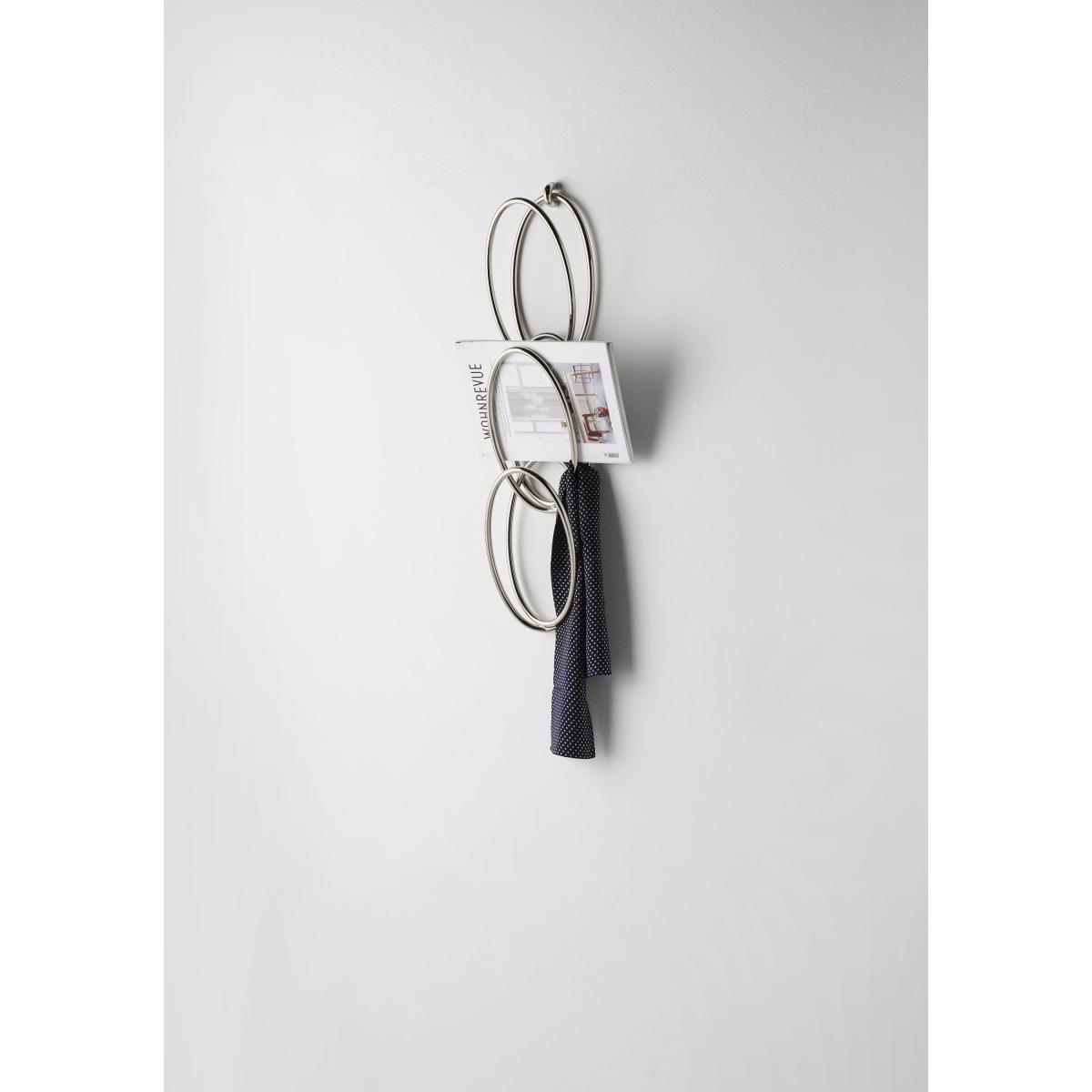 True jewels, these intertwined metal rings form a refined waterfall. They’ll hold your jackets, coats, scarves or a multitude of different objects (hat, book, magazine, plaid, or towel in a bathroom. ). Senzatempo is an unusual piece that dresses your space with grace and originality, bringing character to a room. Senzatempo is a coat rack - but also an object holder - made up of individual steel rings which interlock with each other to give rise to infinitely modular compositions. You can easily remove or add rings (additional rings sold individually). The Senzatempo coat rack is available in two versions: to hang on the wall or ceiling. Like the minutes, the hours, the days. Senzatempo evokes the successive fragments that make up time, juxtaposed endlessly. The designer Lapo Ciatti on the Senzatempo coat stand: “What is time, if not successive fragments of infinity side by side?”.