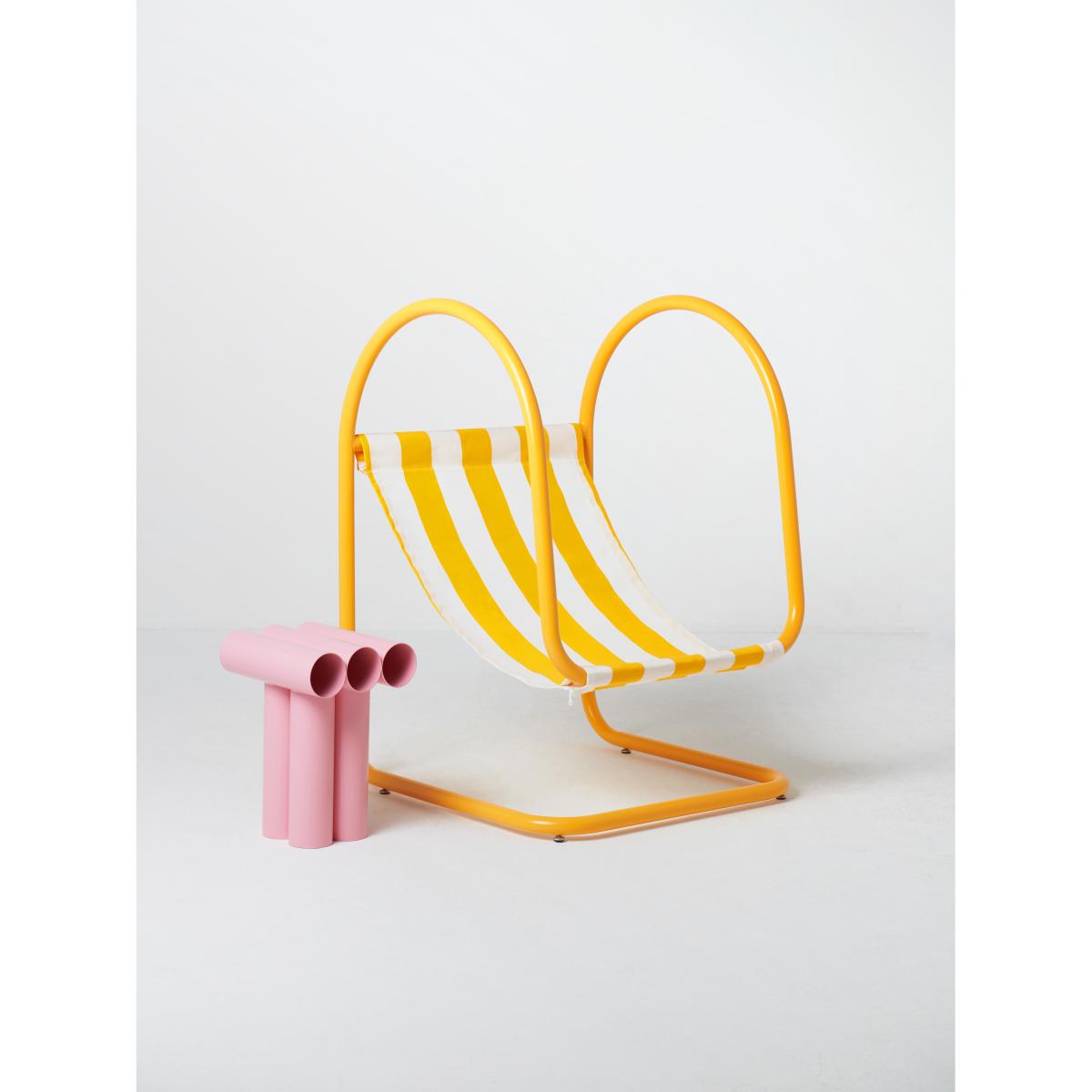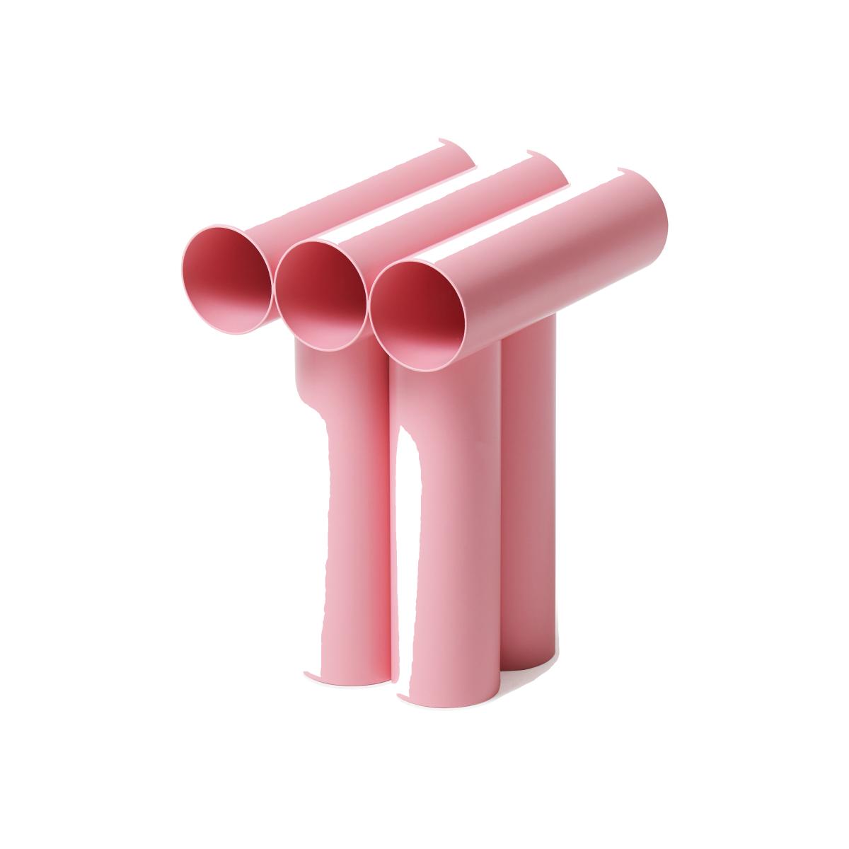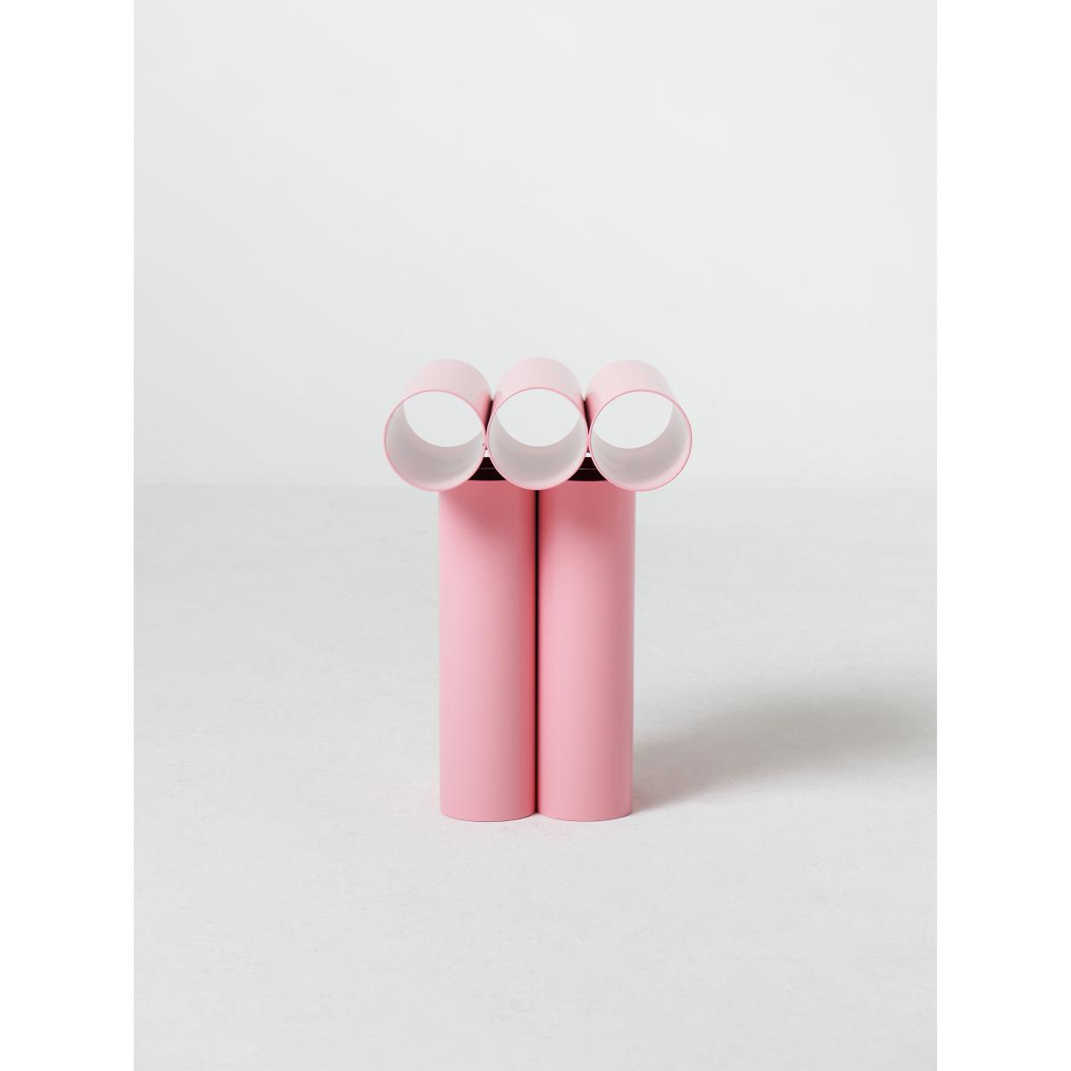 A graphic, sculptural piece of furniture that can be displayed like a work of art in your living room or on your terrace... The Septem stool is an assembly of seven lacquered aluminium tubes. These tubes evoke industrial pipes, twisted by their tangy pink colour. The simple form, both enigmatic and playful, irresistibly attracts attention and stimulates the imagination. A style both full of fantasy yet refined. The Septem stool won’t go unnoticed, but will become a centrepiece in your decor. It cooks a snook at conventional design and run-of-the-mill furniture. With its rudimentary form, lost between a feeling of regression and technical distinction, the tube calls out with its power of interpretation. Designer Axel Chay has succeeded in transforming a basic element (metal tube) into a sculptural, contemporary piece, while preserving the integrity of the original element. Raw materials are used to create an abstract geometric design that seems to defy space and time. French designer Axel Chay has a knack for crafting a daring language of shapes and colours, borrowing here and there from the 1980s, kinetic art and the Memphis movement. Seeking abstraction through strict, calculated geometric shapes, he seeks to breathe new life into sculptural furniture and plays with raw materials such as cork, steel and aluminium. The parts are manufactured or industrialised in France. In this way, the hands or machines behind these household objects come from the aeronautics and nuclear sector, as well as from historical French know-how.