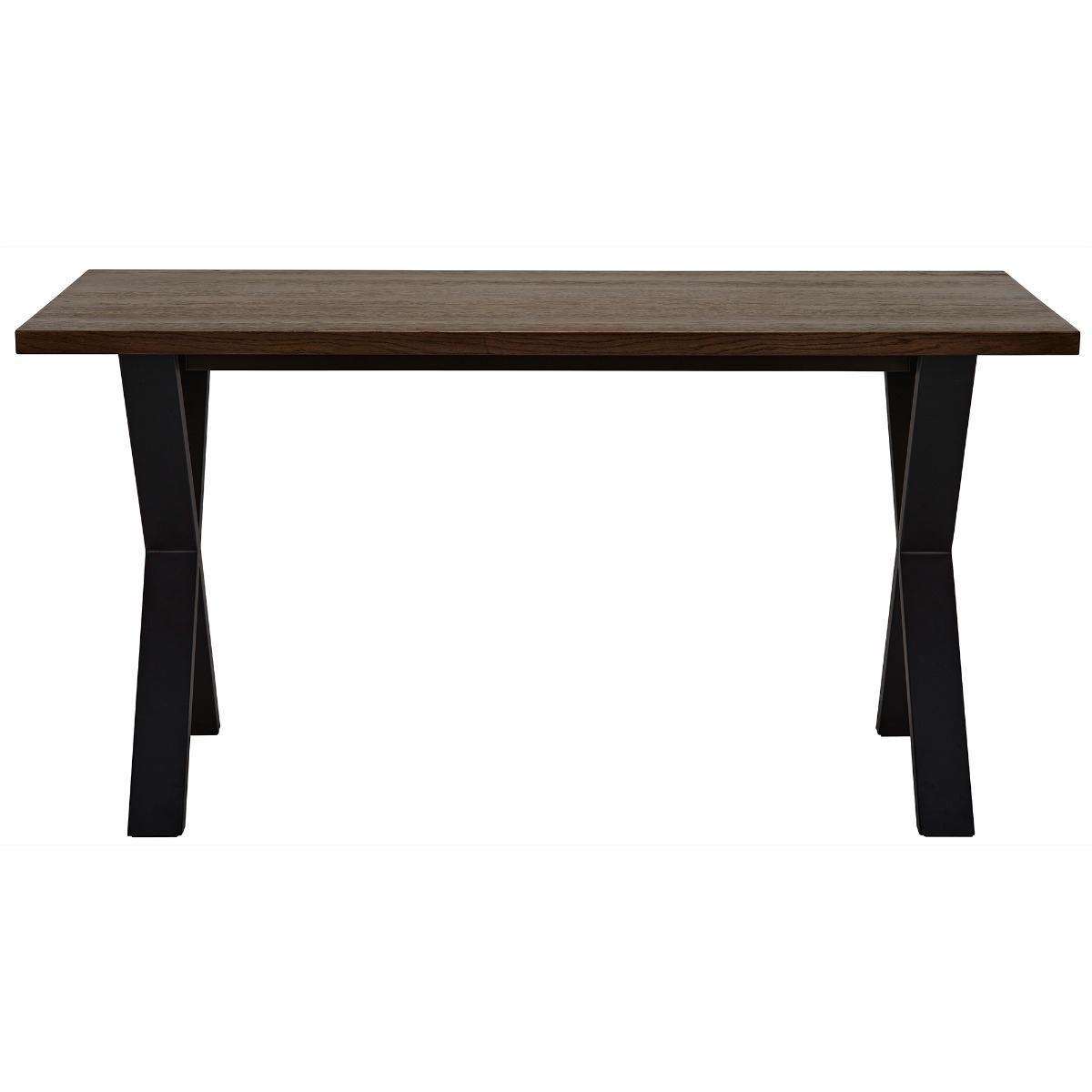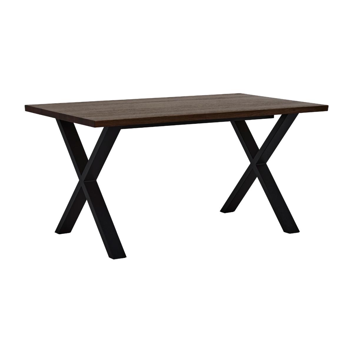 Design. The Sequoia Dining Table showcases a sleek, modern andindustrial look, making it a perfect fit for all kinds of different interior decor styles and improving your dining space. The tabletop is made from a smoked oak veneer, mounted on top of striking black metal legs. Dining and entertaining is easy when the style of this piece creates a stunning talking point.