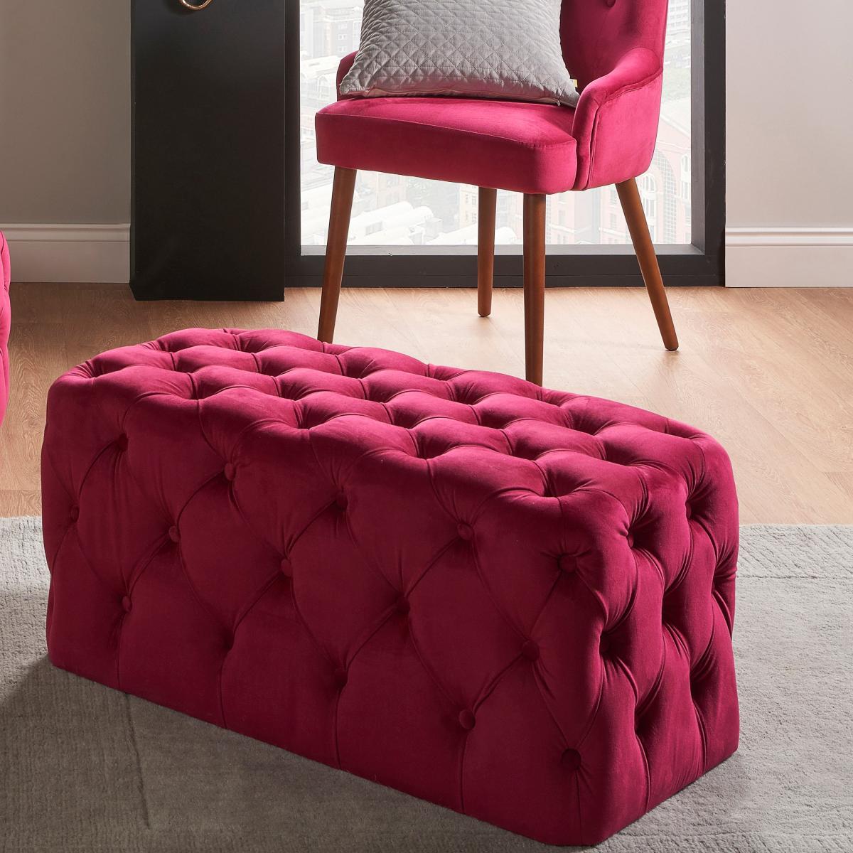 Seraphina Velvet Buttoned Ottoman Raspberry (Pink)