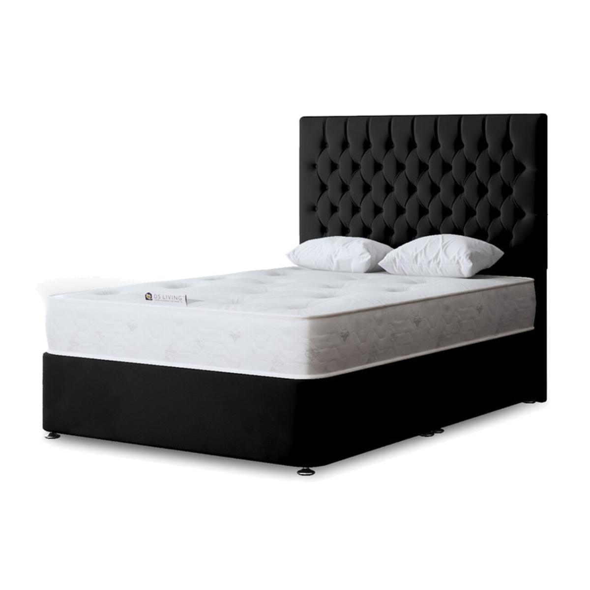 Experience British craftsmanship and luxury with the Seraphine Chesterfield Divan Storage Bed. Handcrafted in the UK, it seamlessly blends durability with bespoke elegance. The Seraphine divan bed offers spacious storage (optional), easy maneuvering, and comes in stylish hues like Steel and Midnight Black. Personalize with zero, two, or four drawers to suit your lifestyle. The Chesterfield divan bed adds regal grandeur and is available in all standard UK bed sizes. Enjoy fast and free delivery nationwide, transforming your bedroom effortlessly with DS Living. Note Mattress sold separately.