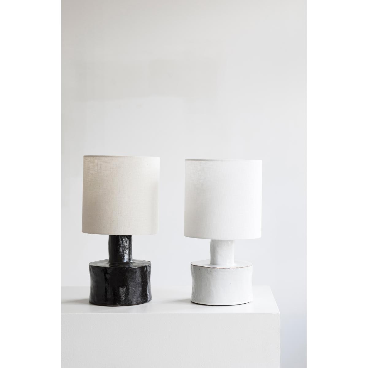 I love this lamp for its bold yet versatile design-its black-white colourway makes it easy to incorporate into a variety of interiors. It works particularly well in modern, minimalist, or Scandinavian settings, where its clean lines and contrasting tones add visual interest without overwhelming the space. For practical styling, consider pairing it with textured or neutral-toned accessories to emphasise its sculptural appeal, or set it alongside natural materials like wood or woven textiles for a balanced look. It’s a great size for bedside tables or sideboards, providing functional light while acting as a statement piece.