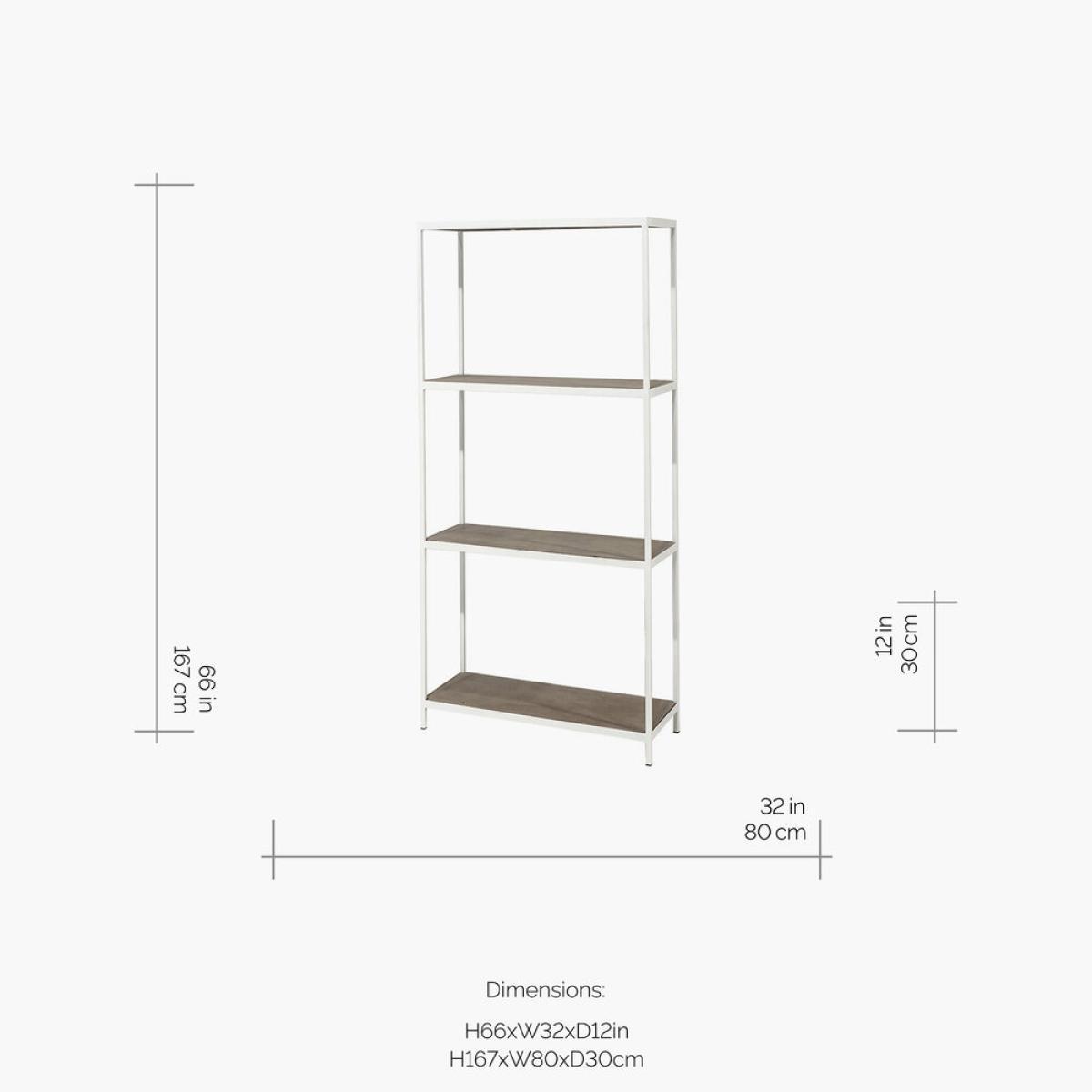 I love this shelving unit for its clean lines and minimalist aesthetic, making it a versatile piece that suits a range of interiors from modern to industrial. It works well in living rooms, home offices, or kitchens where you want to display books, plants, or decorative objects without overwhelming the space. Practical styling tips include grouping similar items for a cohesive look, using baskets or boxes on the lower shelves for concealed storage, and alternating heights and textures to add visual interest. Its open design makes it perfect for creating an airy feel, especially in smaller rooms or where you want to showcase statement pieces.