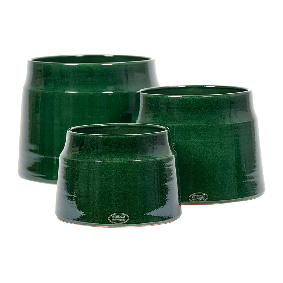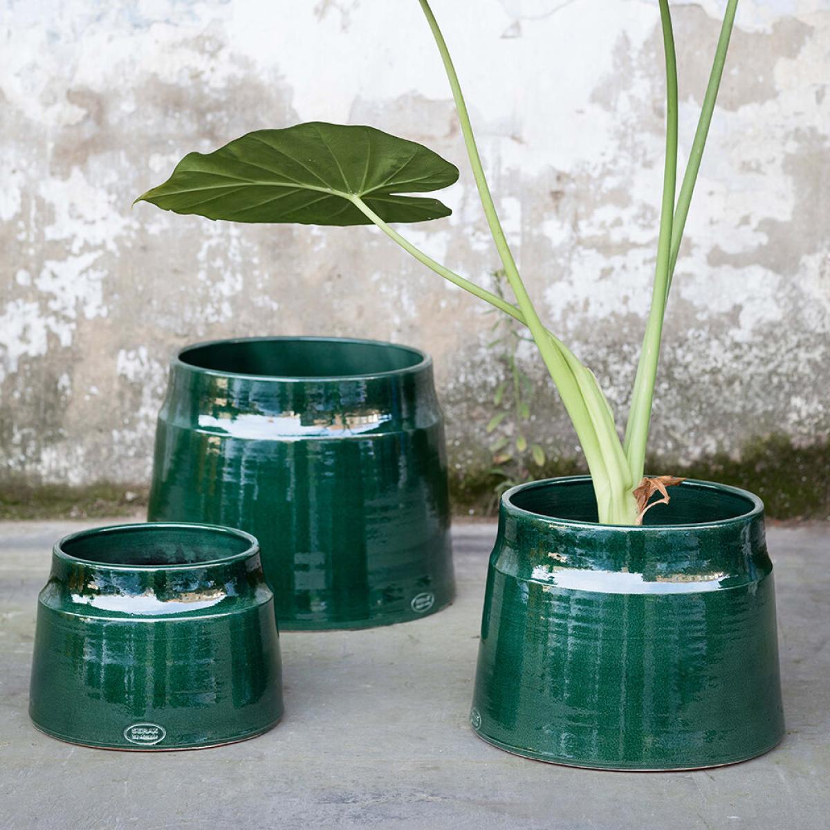 Give your plants and flowers a home with this Glazed Shades Flower Pot from Serax. In a dark green shade, this pot will look beautiful when filled with your favourite plants or flowers. Simple yet stylish, the glossy glaze gives it a unique touch. Available in two sizes. Please note, it is recommended to put the plant into a plastic pot with a saucer before placing it into the pot.