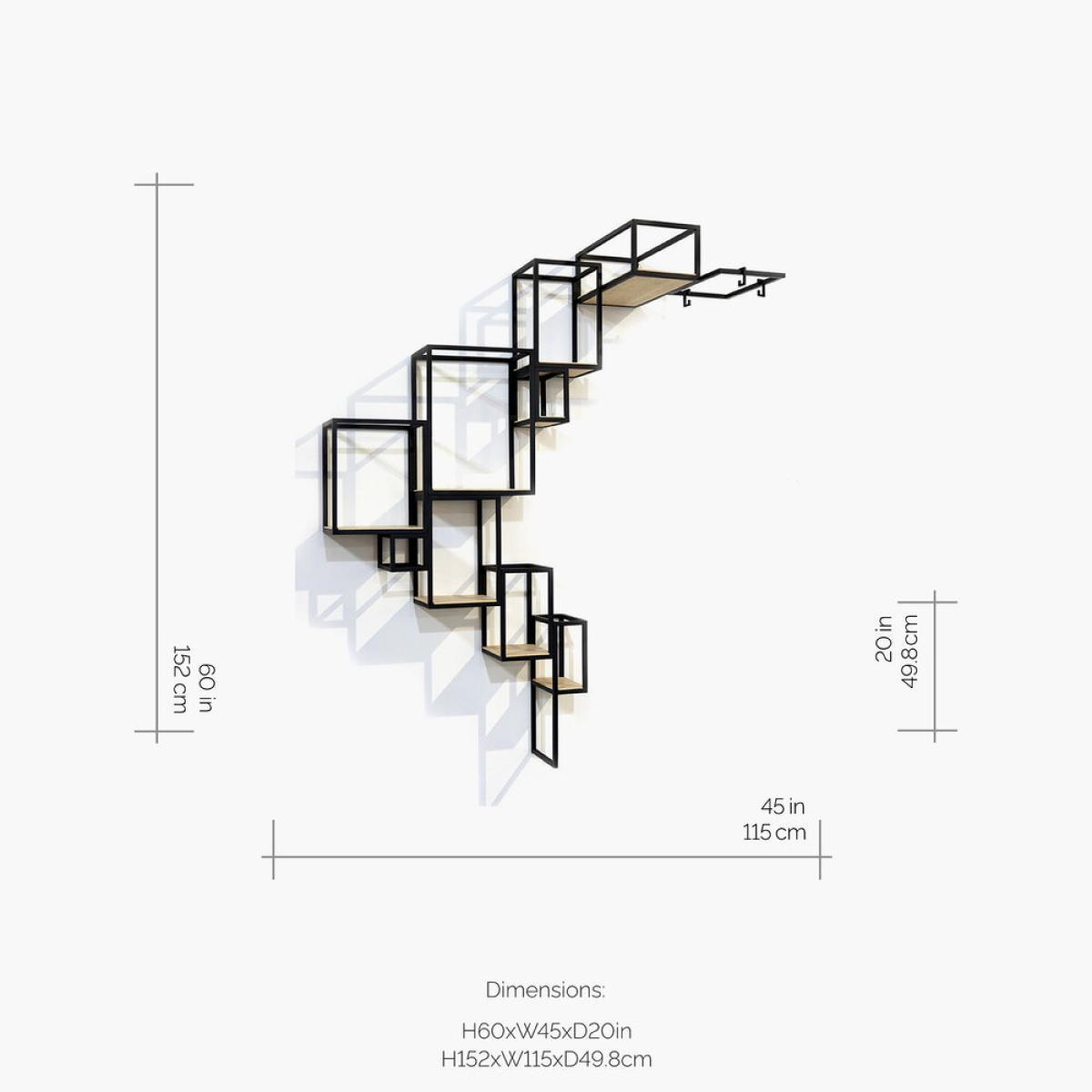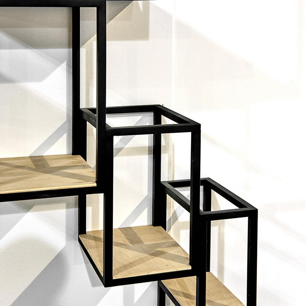 I love this wall shelf because of its bold, architectural design that adds a sculptural element to any room. It works particularly well in modern, minimalist, or industrial interiors where it can serve as a statement piece. The open framework creates a sense of lightness, making it perfect for displaying books, plants, or decorative objects without feeling bulky. For styling tips, consider layering items of different heights and textures to create visual interest, and utilise the varying levels of the shelf to break up monotony. It’s also versatile enough to fit into smaller spaces, like above a desk or in a stairwell, adding functionality and visual impact without overwhelming the space.