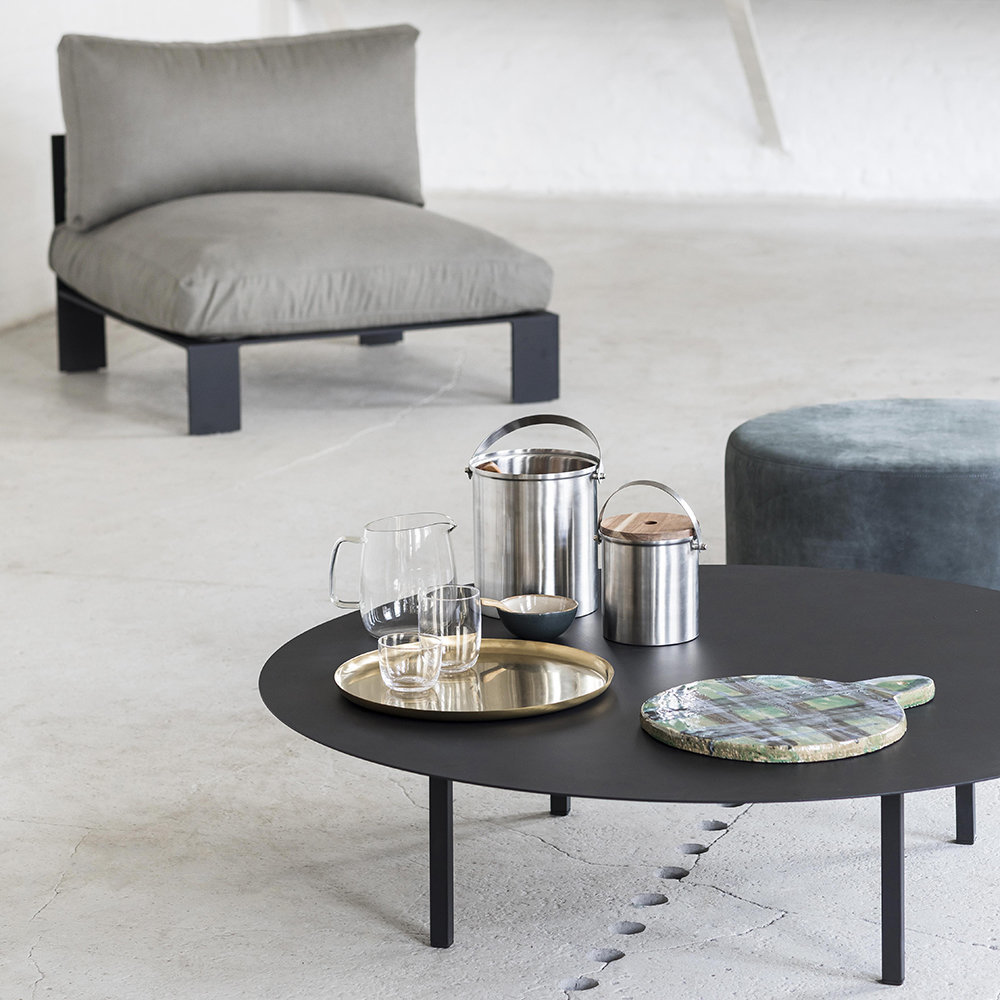 Add a dash of drama to your living room with this Low coffee table from Serax. Made from sleek black steel, this coffee table has a round sheet top and narrow legs. It’s an industrial edge for your living space.