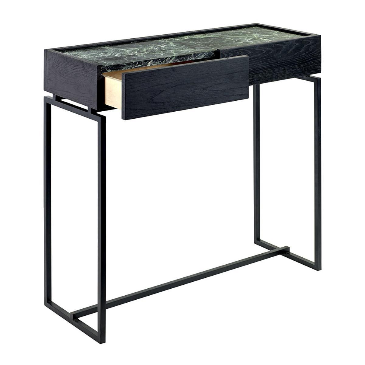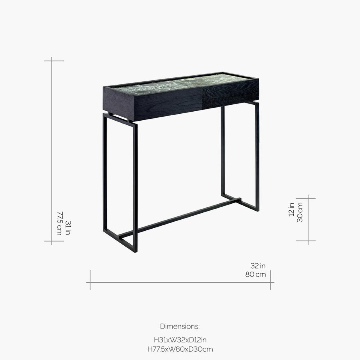 I love this marble console because it offers a sophisticated touch with its striking green hue and elegant marble top, making it a versatile piece for both modern and eclectic interiors. It works particularly well in narrow spaces like entryways or hallways, where it can serve as a statement surface for decorative accessories or a tray for keys. Styling tips include pairing it with minimalist art or metallic accents to enhance its contemporary vibe, or layering with vases and sculptures for added visual interest. Keep the surrounding decor simple to highlight the marble's natural beauty and let this piece act as a key design feature in the space.