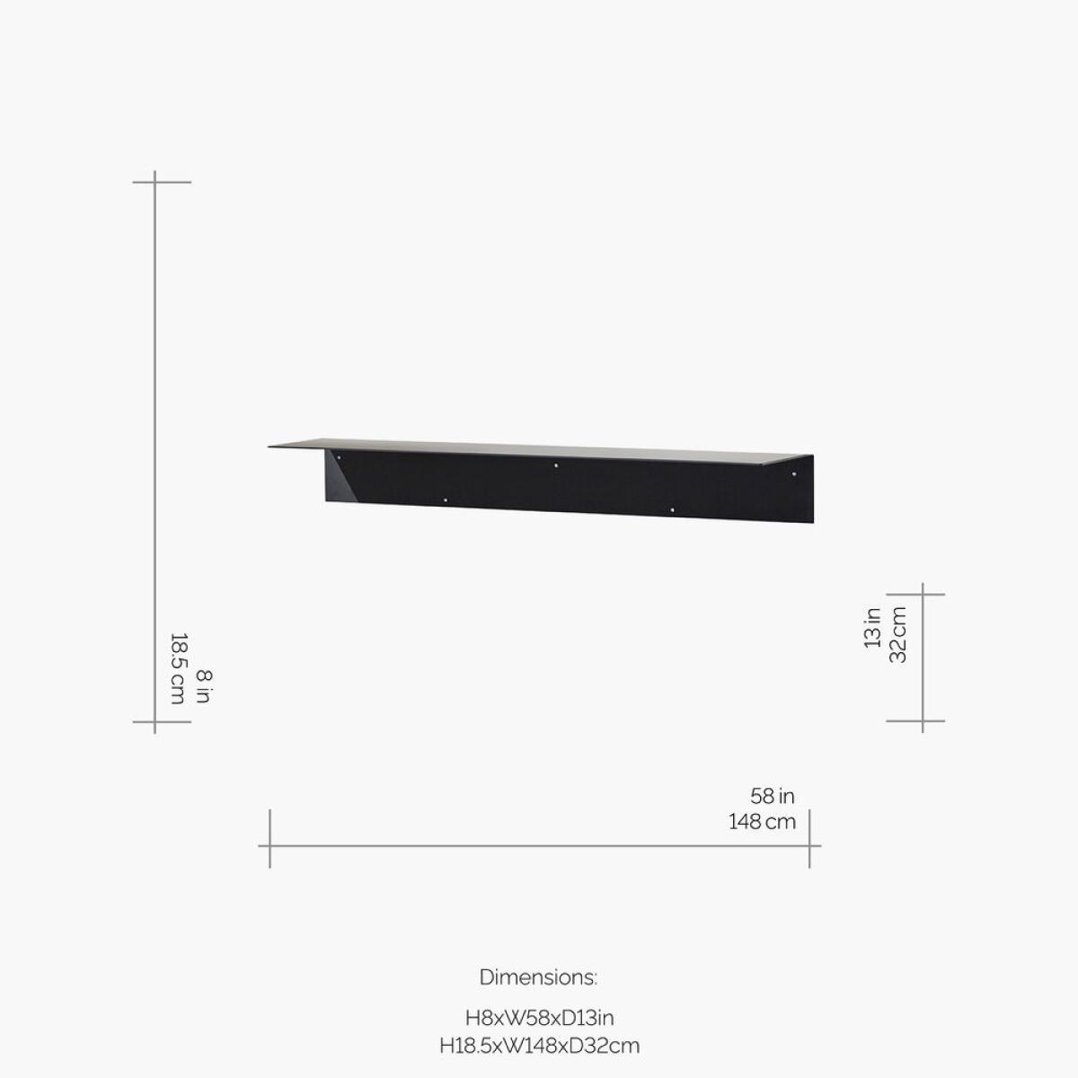 Style up a storm in the home with this shelf from Serax. Sleek and simple, it has a classic L shape and it's fabulous for showcasing prints, plants and any other accessory you want to show off. Key features: * Shelf * Material: aluminium * Dimensions: H18.5xW148xD32cm * Simple L shaped shelf * In sleek black