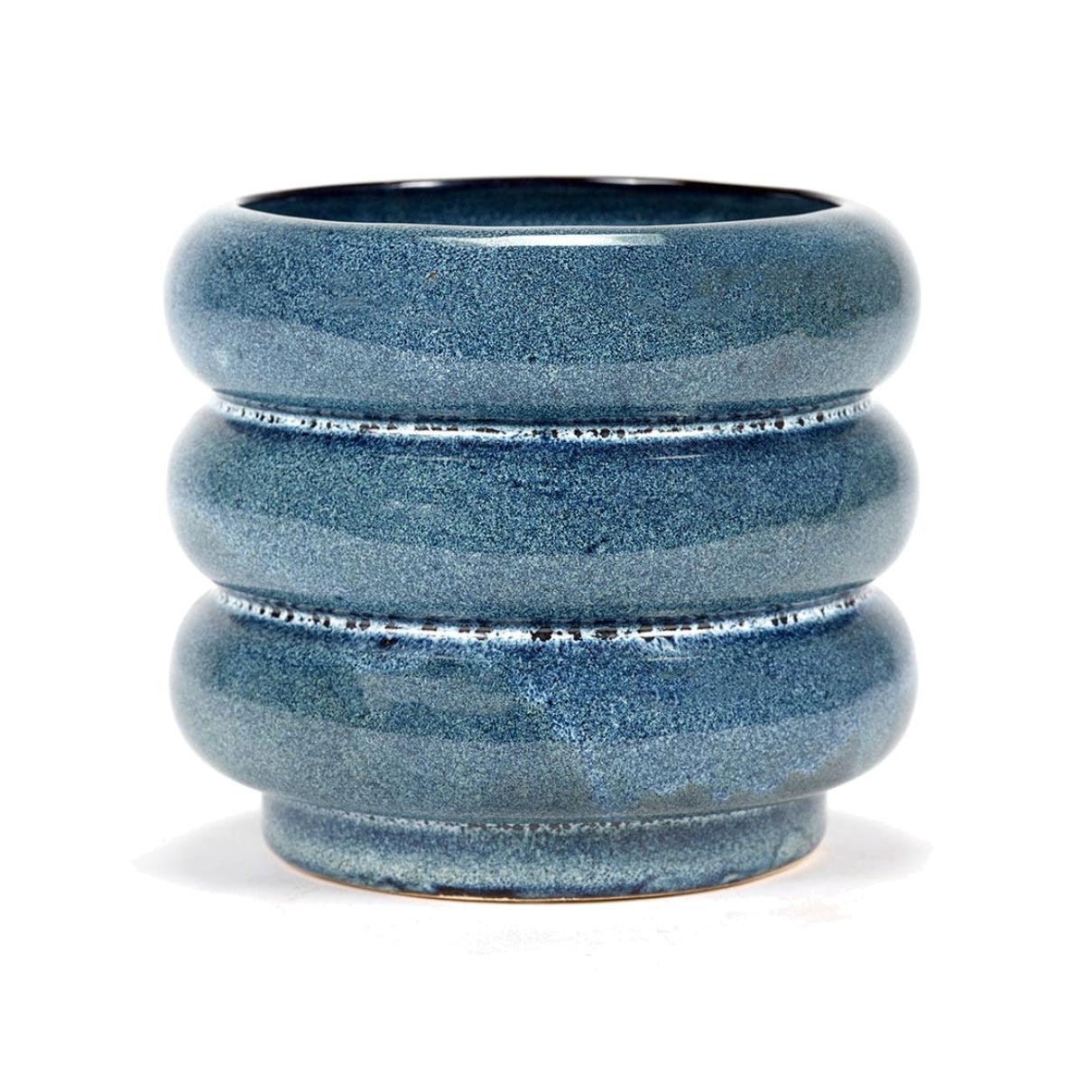 I love this large blue flower pot for its bold, sculptural form and authentic mid-century vibe. It works really well as a statement piece in both modern and retro-inspired interiors, especially when paired with minimalist furniture or natural textures. For practical styling, I recommend displaying a lush, leafy plant to balance its chunky shape, or even using it as a standalone decorative object on a sideboard or shelf. Its generous size makes it ideal for larger greenery like fiddle leaf figs or tall grasses, but it can also be grouped with smaller vases for an eclectic display. Just keep in mind to choose plants that suit its size and shape to avoid overwhelming the space.