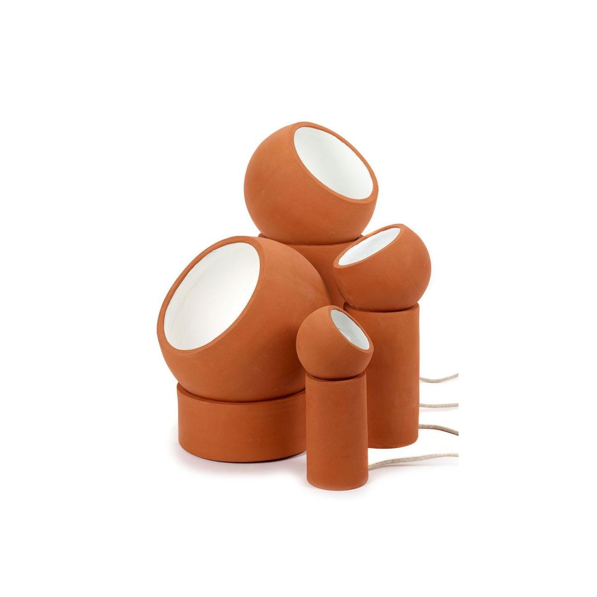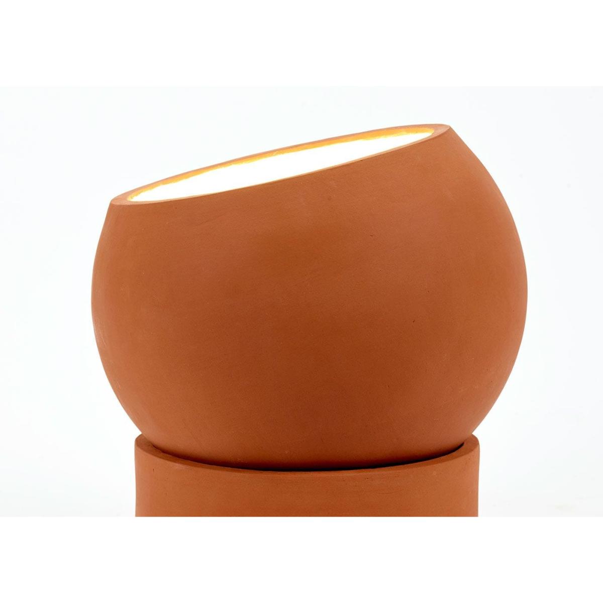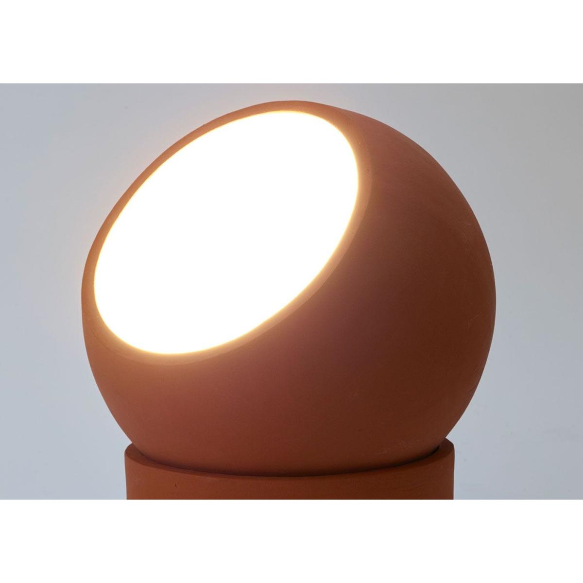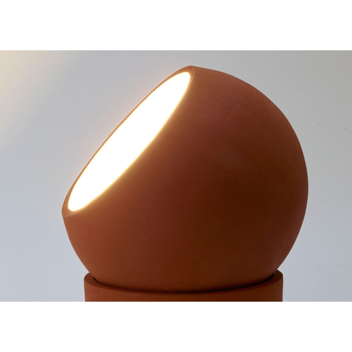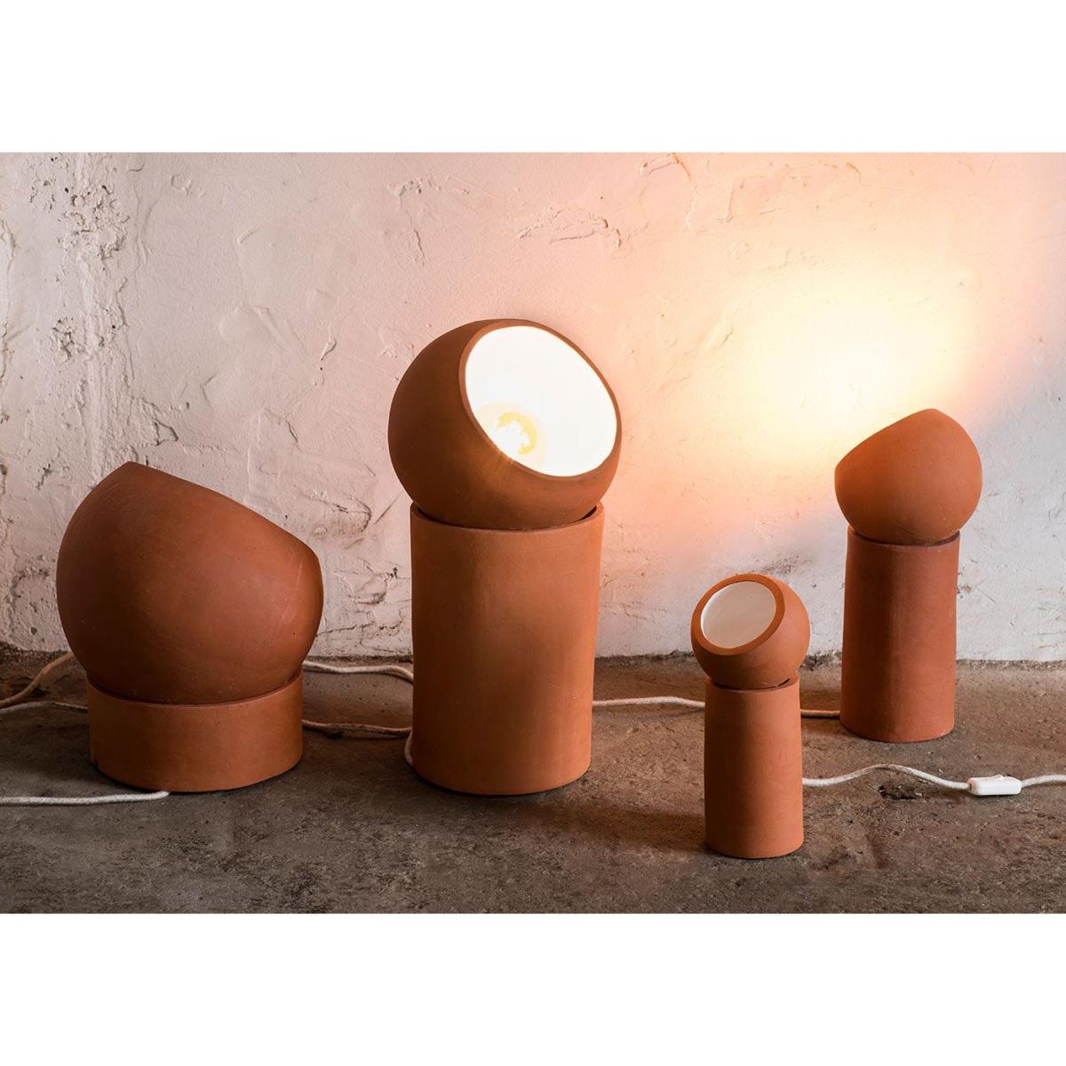 Terra is born out of love with a dash of functionality and has grown into a playful collection of table and floor lamps that, almost imperceptibly, add ambience. An adjustable sphere resting on an empty cylinder can shine its light in any desired direction. The warm terracotta material and the robust finish make for an artisanal look, while the white-coloured interior of the sphere creates a beautiful contrast, optimising the reflection of the light in a peculiar way.