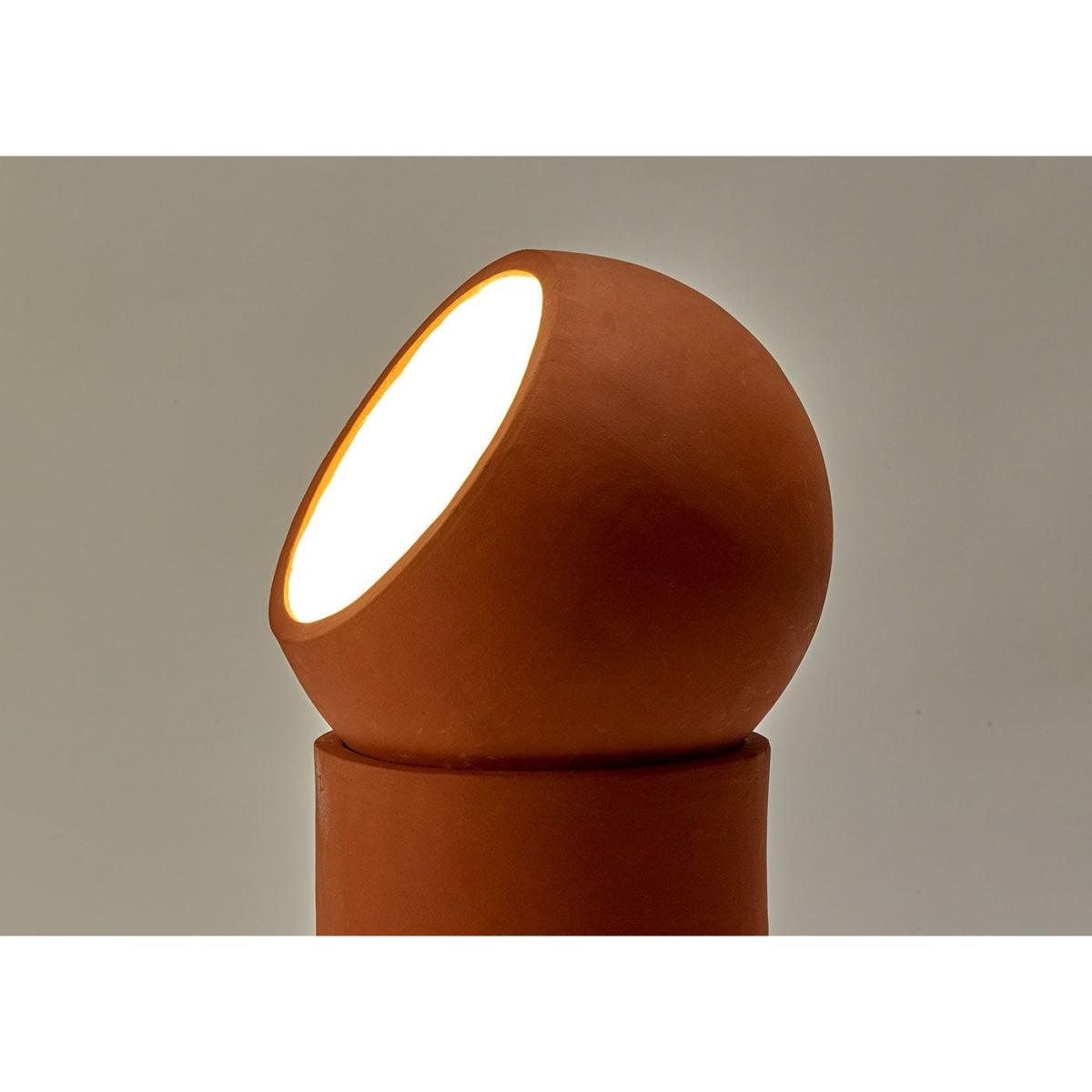 I love this lamp for its bold, sculptural shape and warm terracotta hue, which add a touch of earthy sophistication to a space. It works well in both contemporary and rustic interiors, offering versatility whether placed on a side table, console, or shelf. To style it effectively, consider pairing with contrasting materials such as metal or glass for added visual interest. Practical tips include using it in a bedroom or living room to create ambient lighting, and keeping cords discreet or tucked away for a clean look. Its sizeable base and unique form make it a statement piece that combines function with aesthetic appeal.