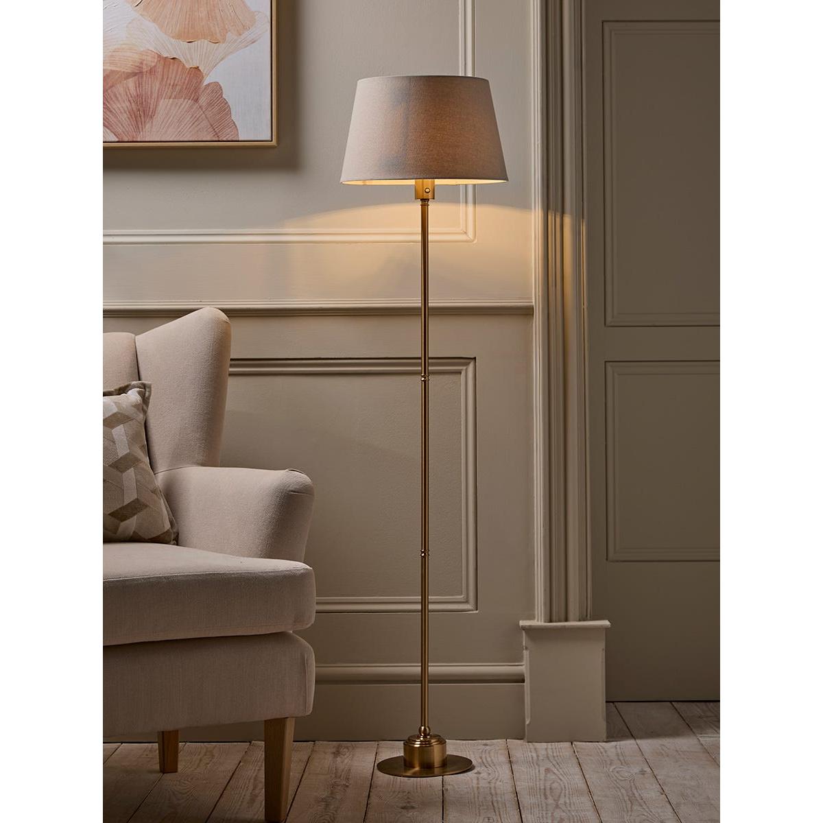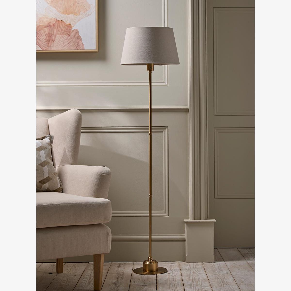 Slender and elegant, this floor lamp promises to light each and every corner of your home beautifully. With a simple, tapered pearl grey shade, the brass-toned base offers the look of luxury for an opulent finish in your space. Its rechargeable nature means that even those small corners of your home that a cable just can't reach can be well-lit, and bring a gentle ambience to those hard-to-reach places.