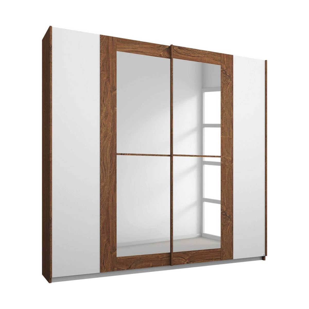 Serena 2 Door Sliding Wardrobe With Mirror, Stirling Oak and Alpine White