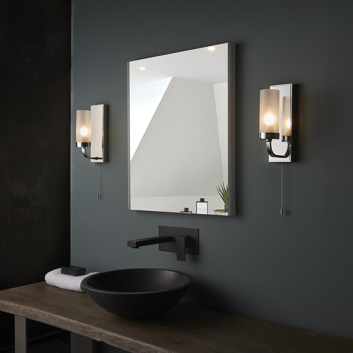 Innately serene, Serena is a beautiful and clean bathroom wall light that will add a touch of brightness to the room with its ultra reflective chrome plating and frosted glass cylindrical shade. IP44 rated.