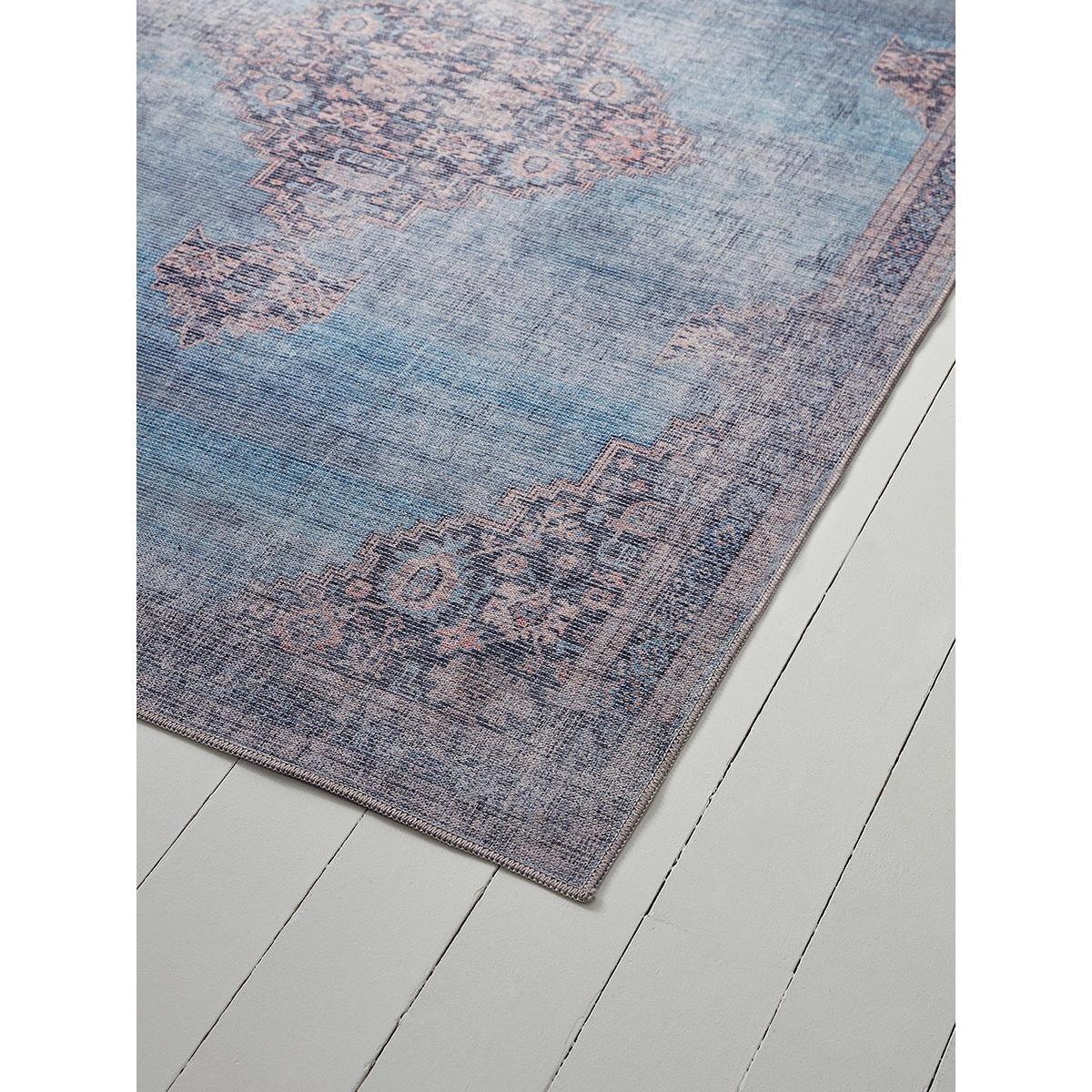 A timeless addition to any home, our Serena rug features a traditional aged design in muted tones of French blue to complement a calm setting. Woven in a cotton and chenille mix for softness underfoot, this versatile rug will bring classic charm to a bedroom or living room.