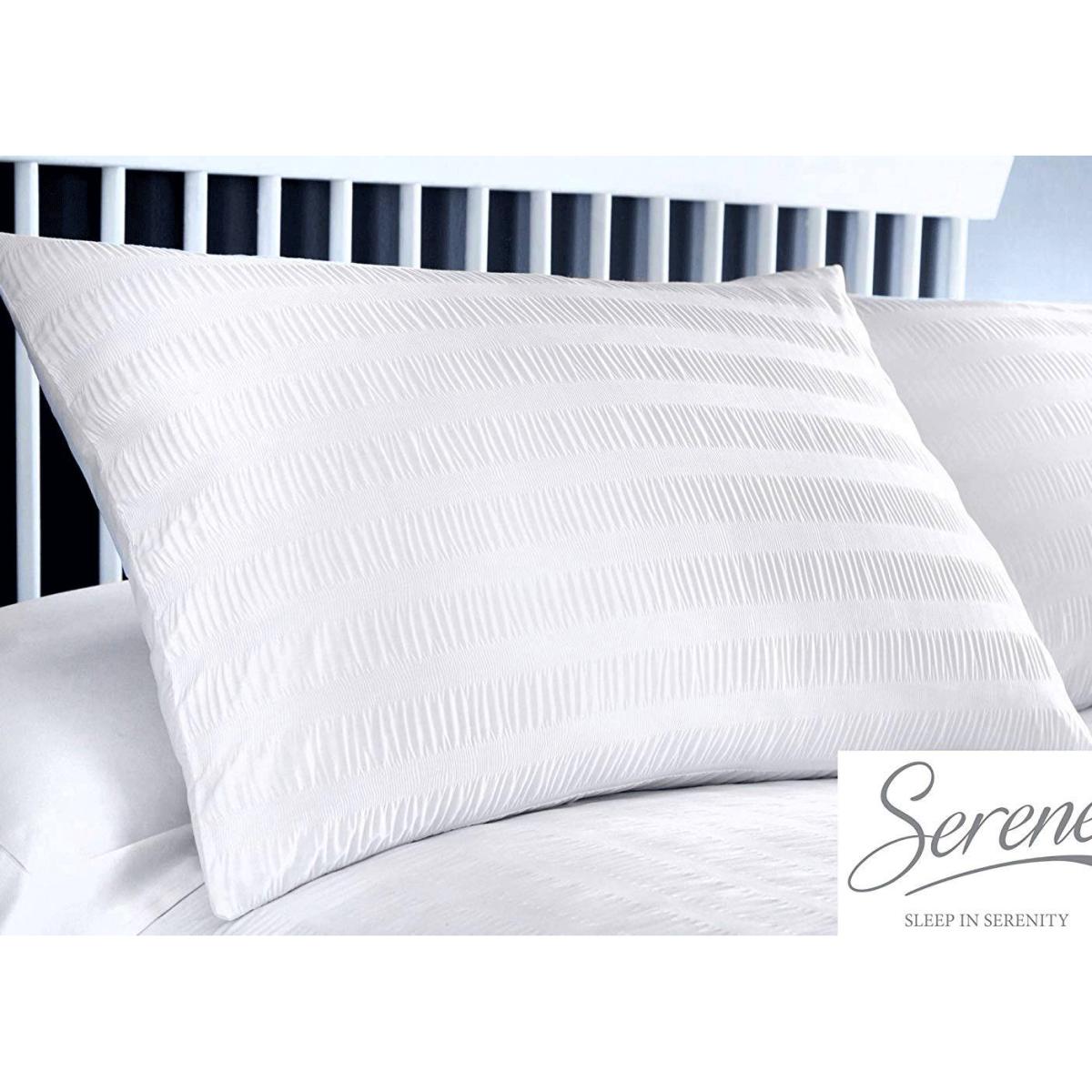 A contemporary modern design duvet cover set made from a blend of fine cotton and polyester. With an all-over ruched finish this seersucker design will add a touch of elegance to your bedroom. Single Set includes 1 matching pillowcase. Double,King and Superking include 2 matching pillowcaes. Material: 52% Polyester / 48% Cotton Machine Washable at 40° C