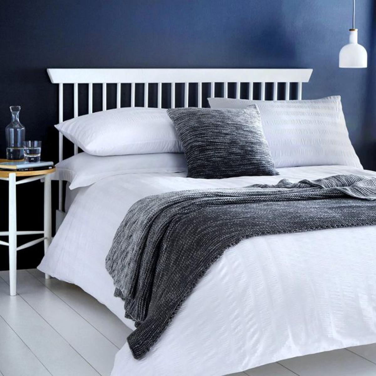 I love this bedlinen for its understated versatility and subtle texture. The seersucker fabric adds a touch of relaxed sophistication, making it ideal for contemporary, minimalist, or Scandi-inspired interiors. It works well in neutral-toned spaces, adding depth without overpowering the overall scheme. For practical styling, I’d suggest pairing it with layered linen or cosy knitted throws for a layered look, and introducing accent cushions in muted colours or soft patterns to create visual interest. Its calm appearance makes it a great choice for bedrooms designed for relaxation and simplicity.