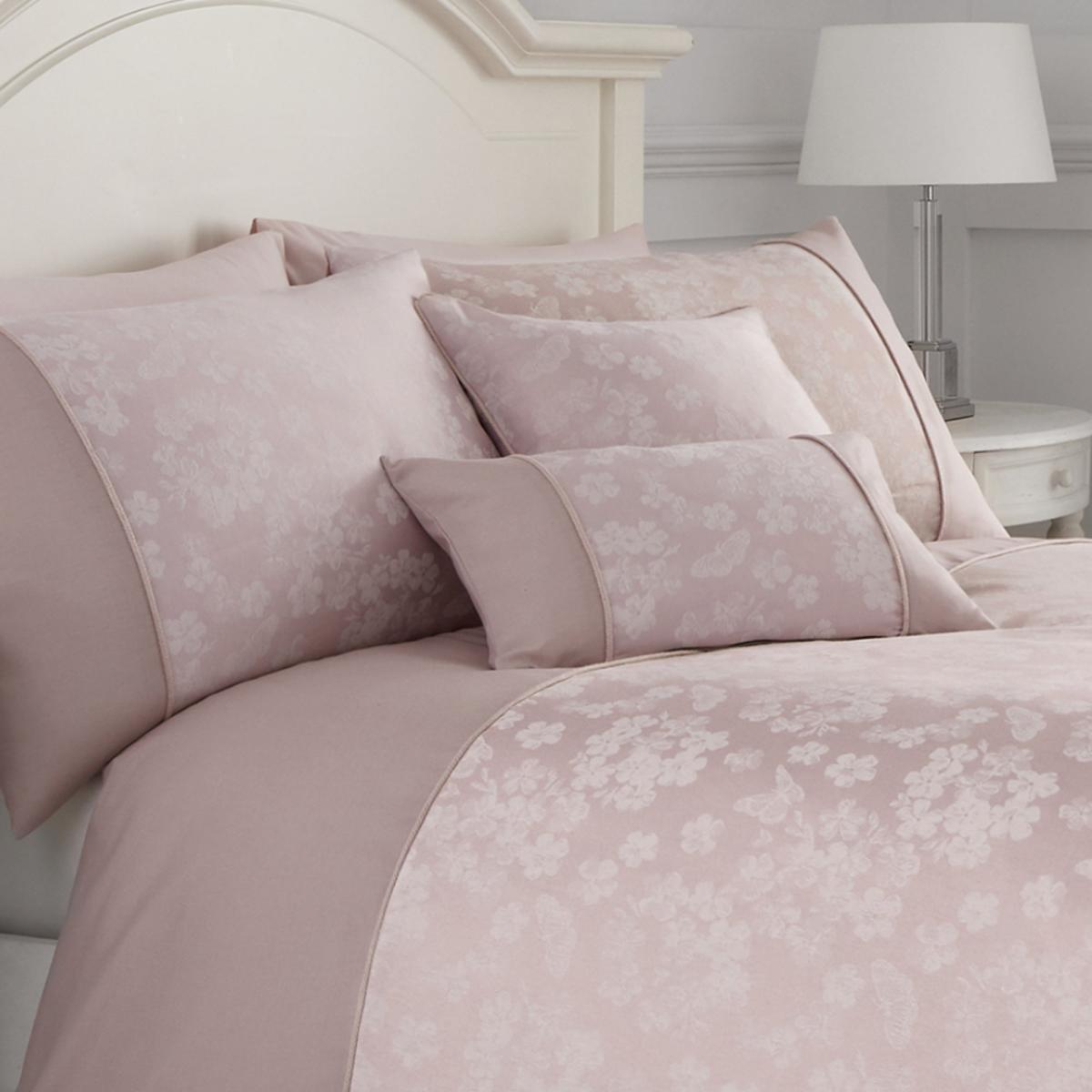 Transform your bedroom into a tranquil sanctuary with this beautiful blossom duvet cover and pillowcase set. In a gorgeous blush colourway this set features an exquisite jacquard design with a neutral cuff and sumptuous rope corded trim detail for that perfect finishing touch. Crafted from a soft polycotton blend that'll soothe you to sleep, with coordinating curtains and bedroom accessories available to complete the look.