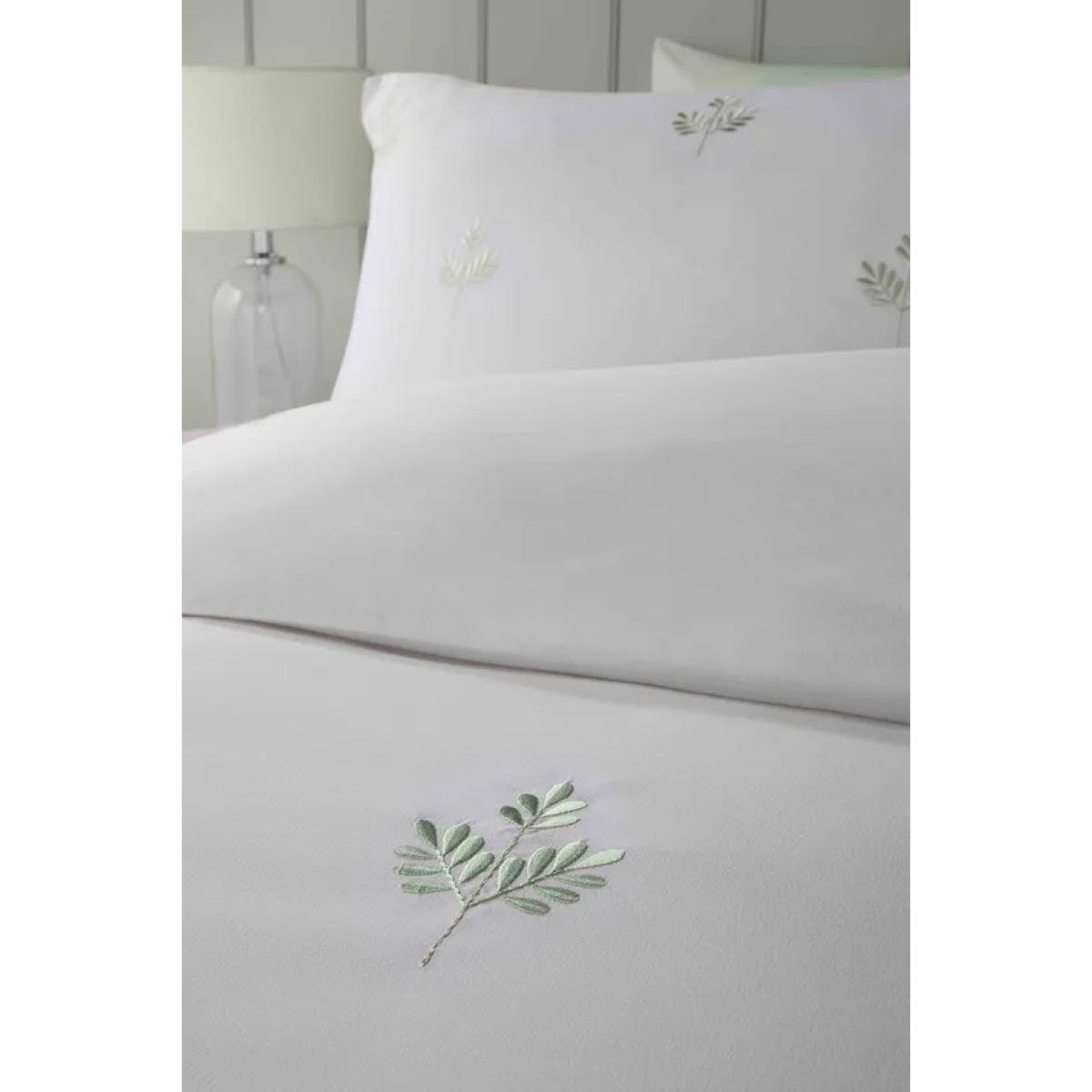 Serene Emily Embroidery Duvet Set - White/Green - Super King