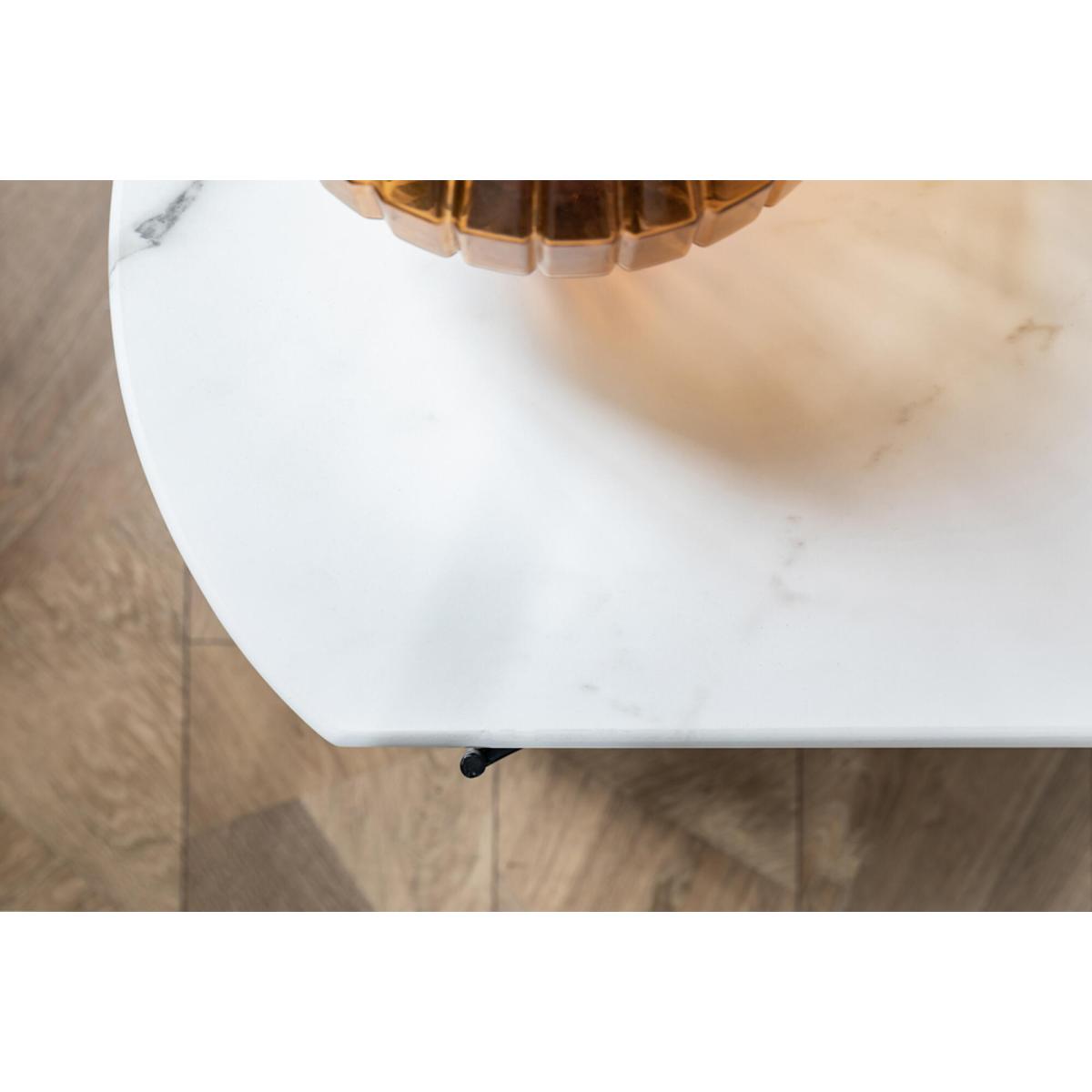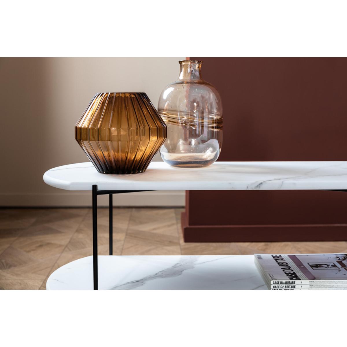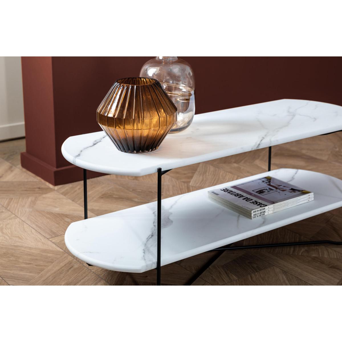 We can’t help but admire marble and it’s cool presence within a space - simple, clean and serene! The faux white marble on this uniquely shaped and shelved console table pairs beautifully with the black metal base. Packed flat for easy delivery to any room, with all the tools supplied for easy assembly.