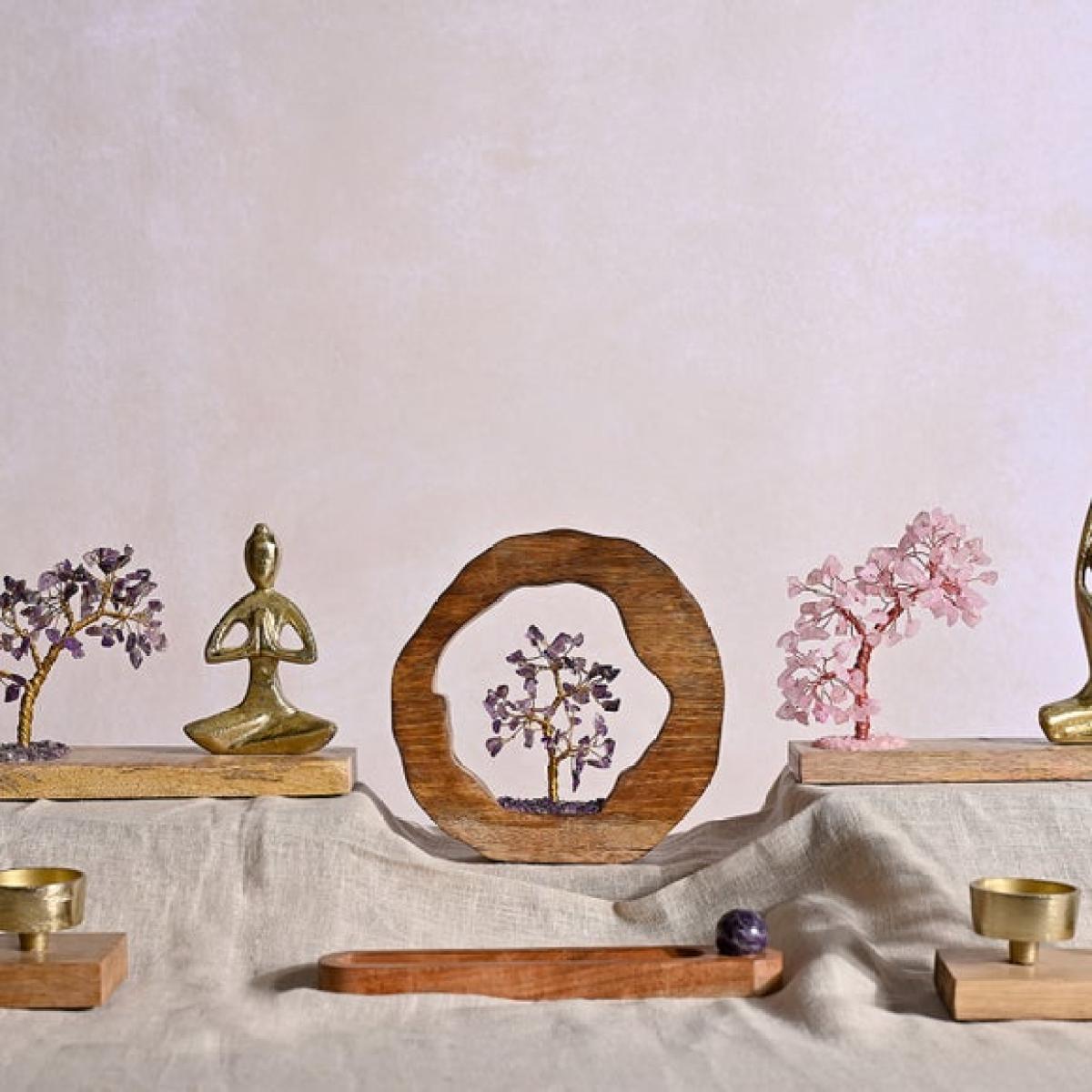 * Genuine jade crystals * Twisted metal tree * Tealight holder * Wooden base Bring a sense of calm to any space with the Serenity Green Jade Gemstone Tree Tealight Holder. Delicately adorned with genuine Green Jade crystals, this piece is believed to support peace, harmony, and emotional balance. The natural wooden base adds warmth and stability, enhancing the soothing tones of the vibrant green stones. A tealight holder, perfect for your choice of scented or unscented tealight (not included) offers a gentle glow, ideal for moments of reflection or relaxation. A lovely addition to a wellbeing corner or as a thoughtful gift.