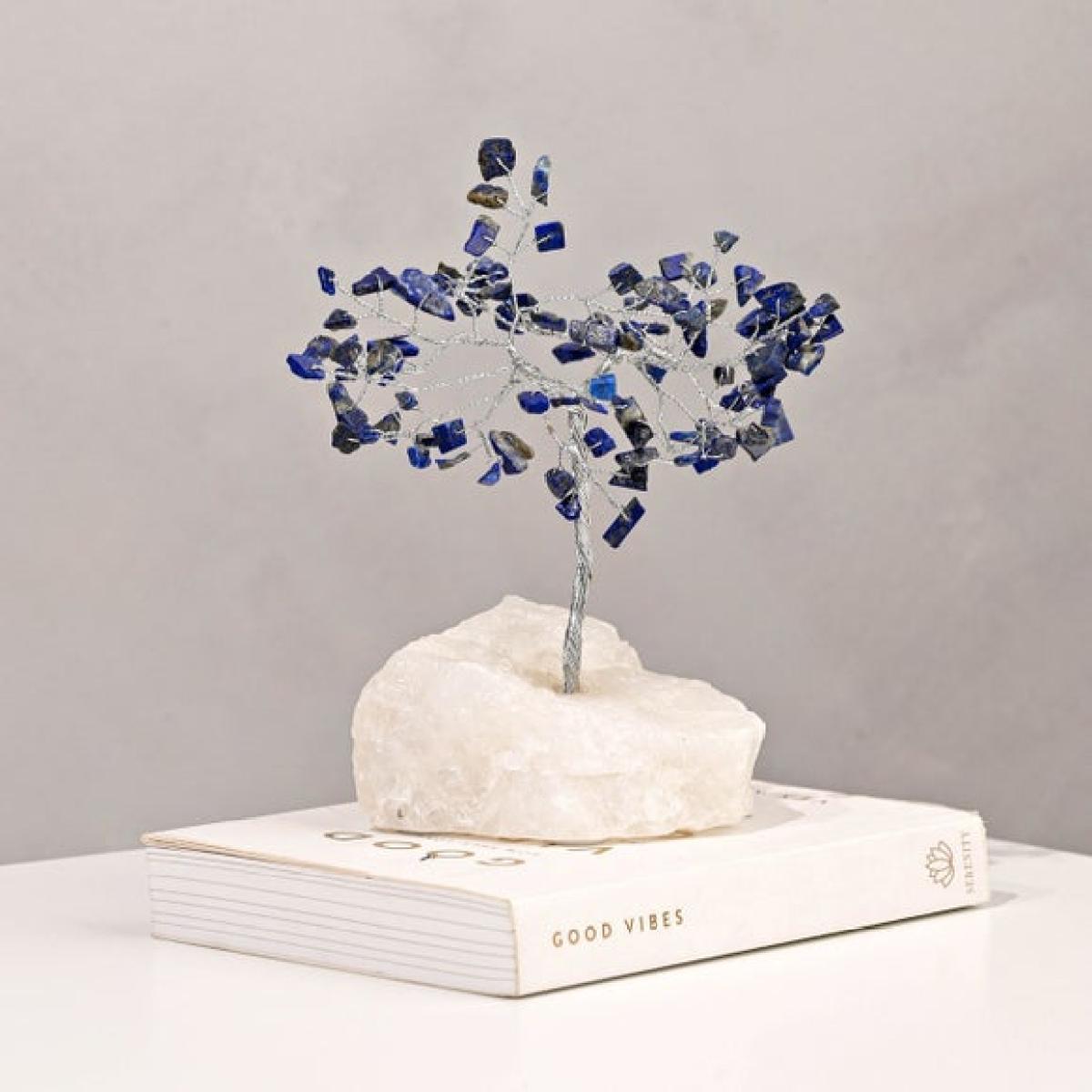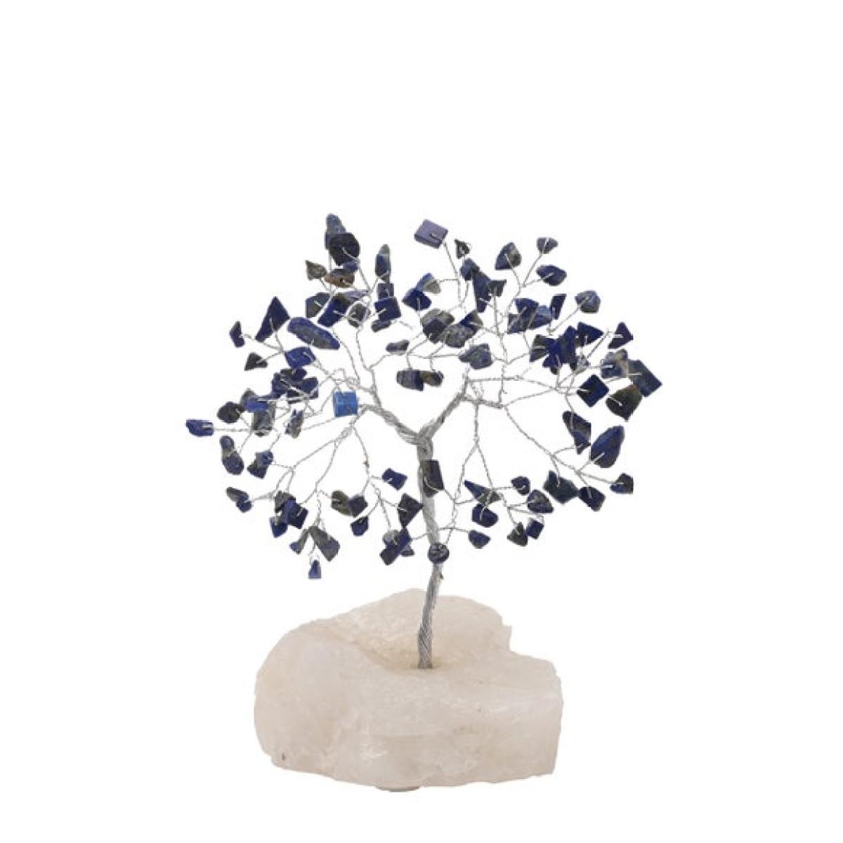 * Genuine lapis lazuli crystals * Silver toned metal * White quartz base Discover the Serenity Lapis Lazuli Gemstone Tree, a stunning accent for any space. This small tree features a twined silver-coloured metal trunk and branches, adorned with 100 genuine blue lapis lazuli crystals. It stands elegantly on a white quartz base. More than just a beautiful ornament, it's believed to bring positive energy to your home.