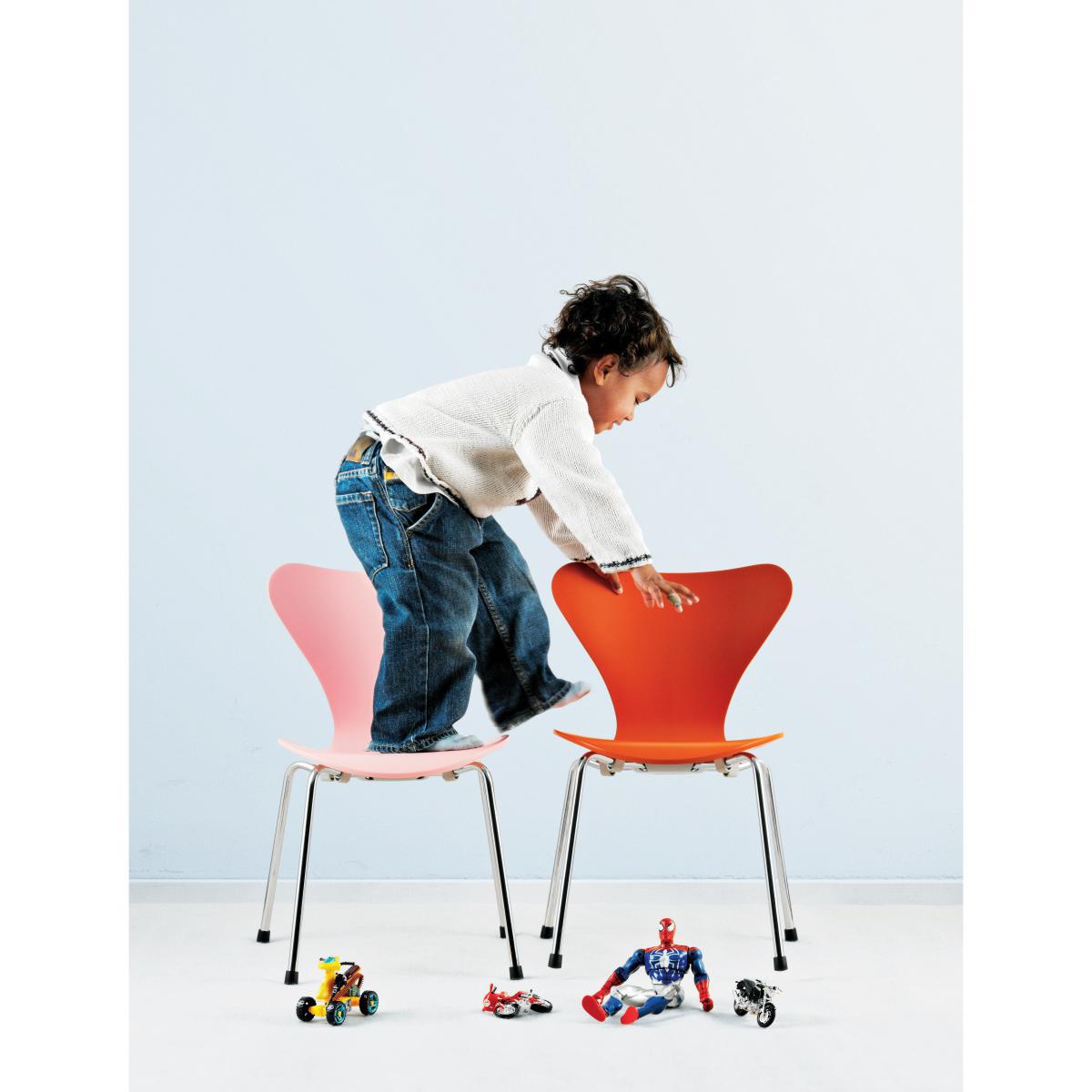So that our beloved toddlers appreciate design from an early age, the iconic Series 7 chair is now available in a child-friendly XXS version. Created in 1955 by the famous Arne Jacobsen, the "Series 7" chair is a true icon of Scandinavian design now reissued by Fritz Hansen. Light and durable, it can withstand the worst our little angels can throw at it and moves easily from the bedroom to the living room! The timeless design of the "Series 7" will continue to stand the test of time. Its vintage style will always look sensational! This chair has a tinted ash plywood seat, combined with a tubular steel base. The "Series 7" chair comes in colours which are totally new and extremely trendy: blue, white and pink!".