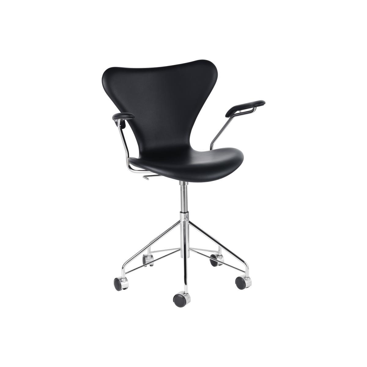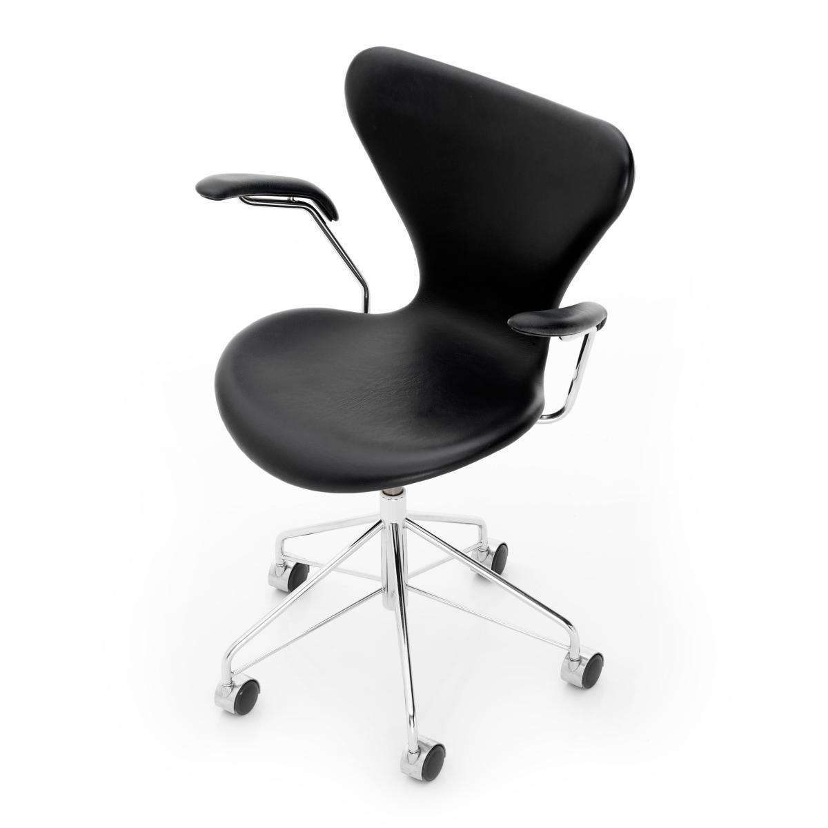 Série 7 Swivel armchair - Leather by Fritz Hansen Black