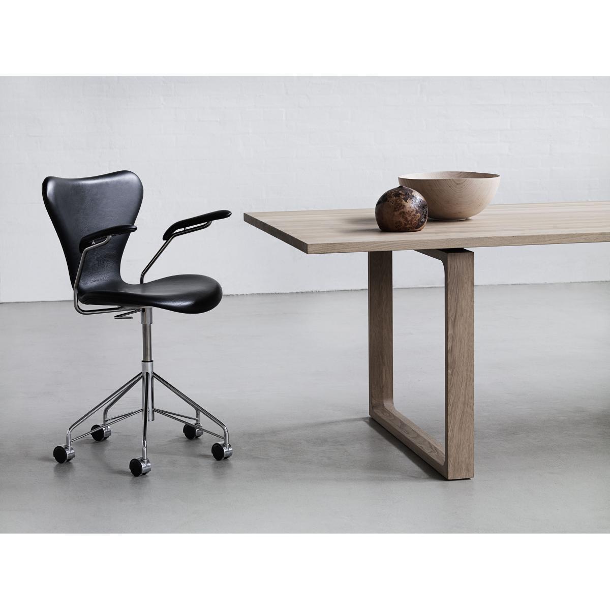 Explore the iconic Series 7™ chair with a functional swivel base. The visionary Arne Jacobsen exploited the possibilities of lamination to perfection resulting in the iconic shape of the chair. Series 7™ represents the chair in the Fritz Hansen collection with the widest range of applications.