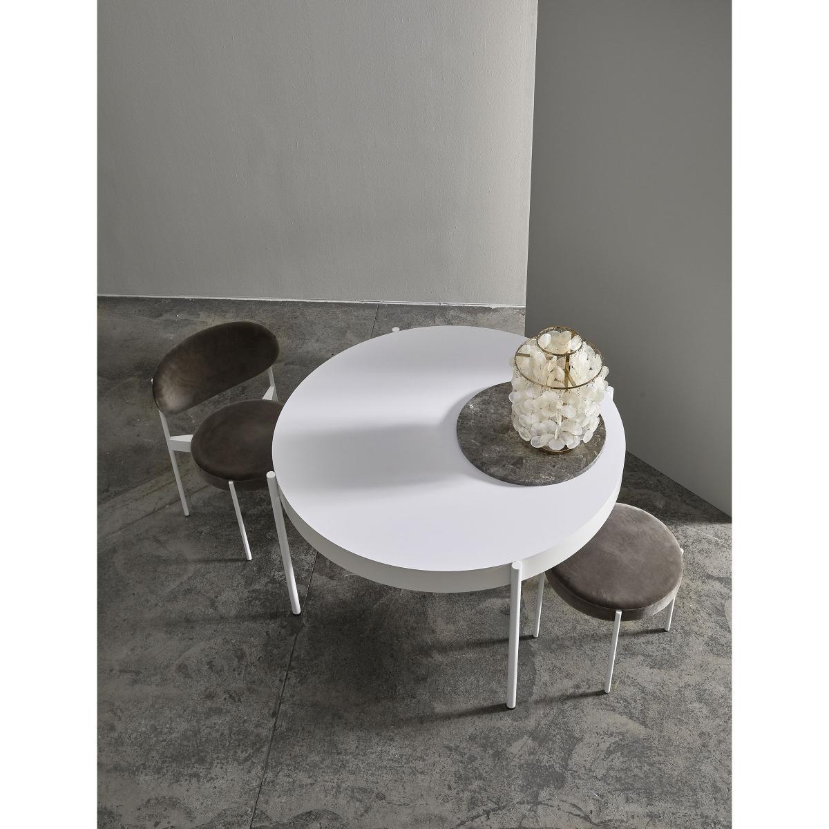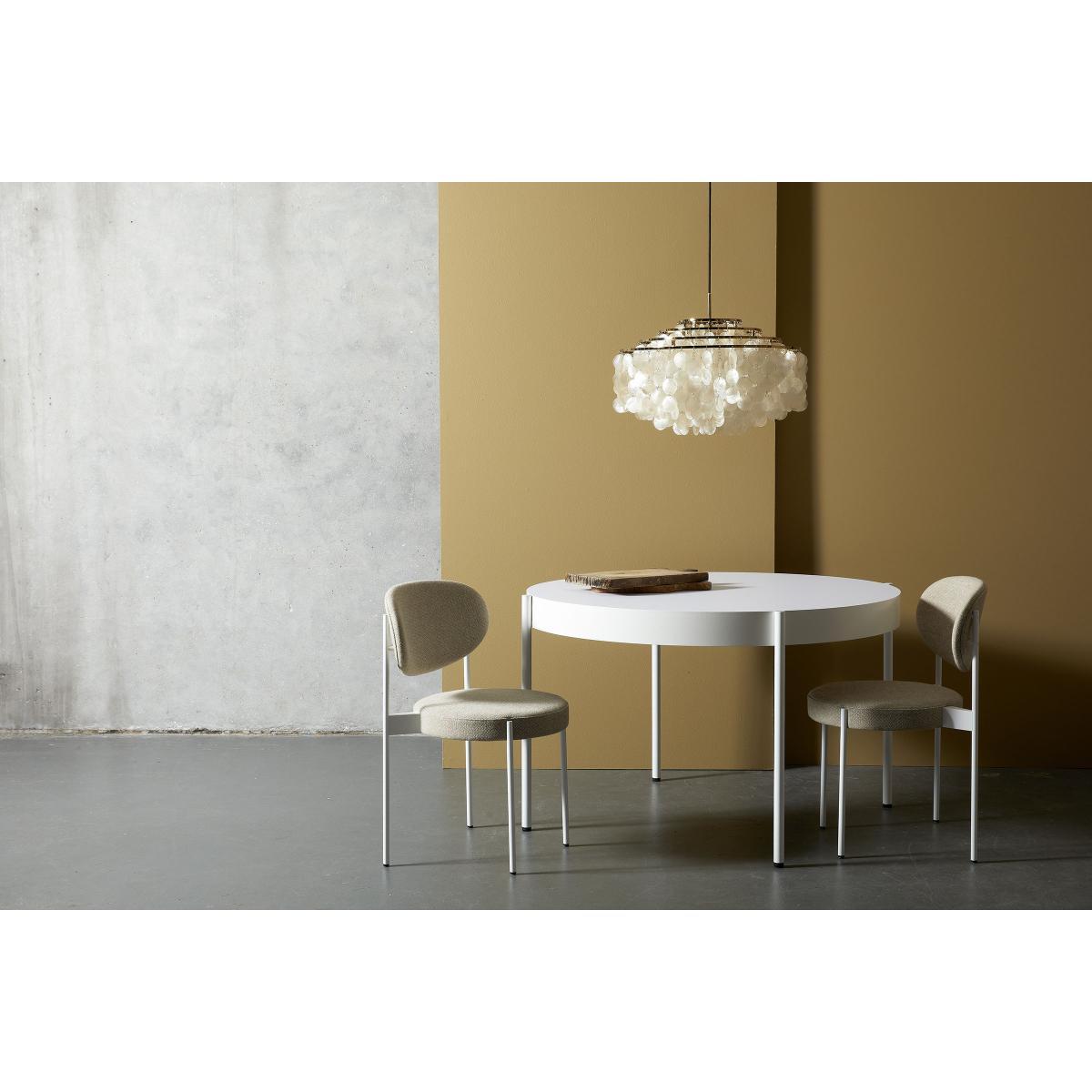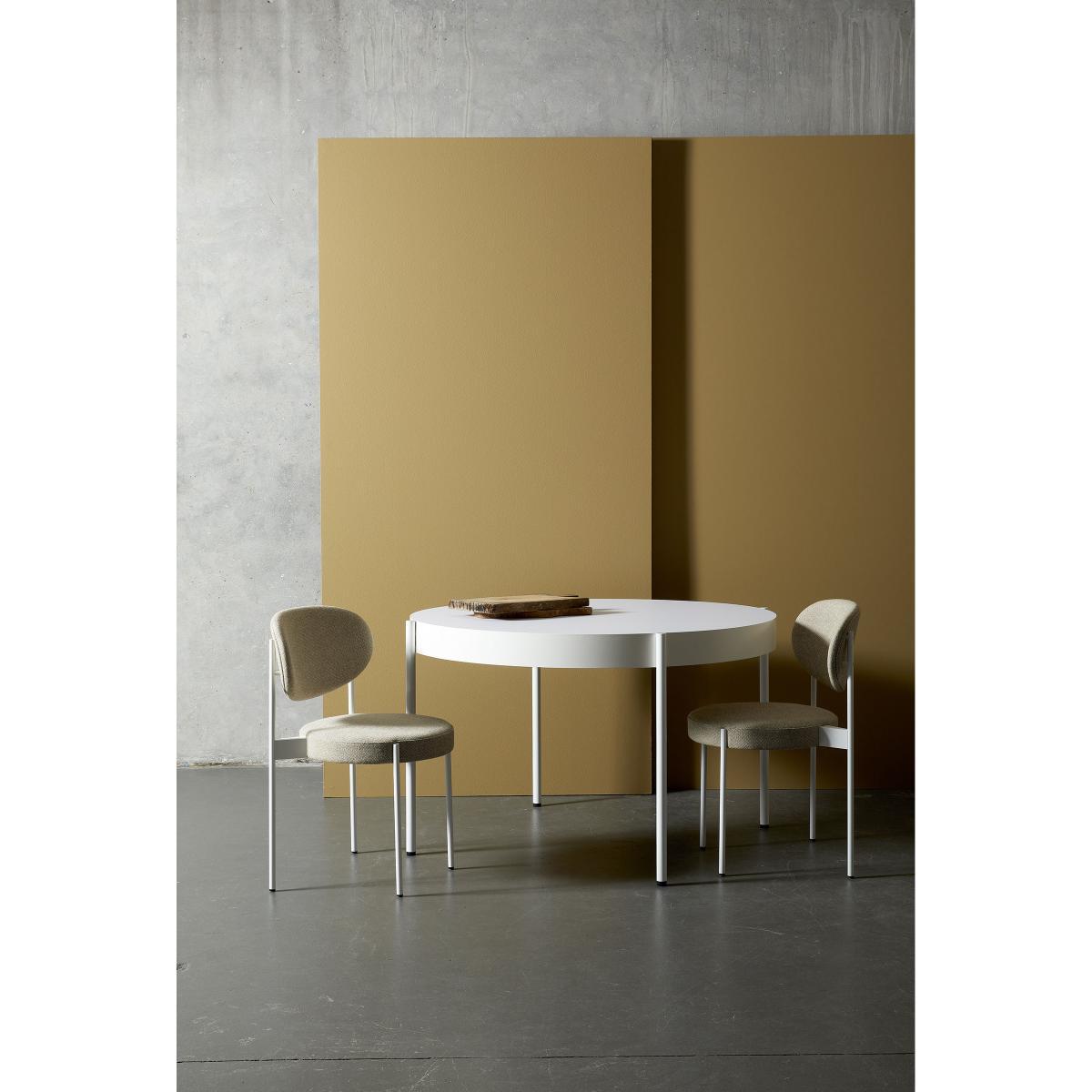 Enter the design legend with the reissue of the “Series 430” table, created in 1967 by Danish designer Verner Panton. Although most of the maestro's works have acquired iconic status, the design company for his creations, Verpan, and his widow, Marianne Panton, offer us a collection that’s remained relatively unknown to the general public. The “Series 430” table stands out with its broad-edged top and the original position of its steel legs. The four thin legs are fixed to the outer edge of the top so that the silhouette is light, almost floating. The MDF top is covered with Fenix-NTM® thermo-laminate: this ultra-hard-wearing high-tech material is made in Italy using nanotechnology. Used initially as a covering in kitchens and bathrooms, this material has unique properties: excellent resistance to scratches, abrasion, heat, stains, impact, detergents and solvents. The strength, dimensional stability, inalterability, water-repellent and hygienic nature of the Fenix-NTM® table top make it suitable for a wide variety of uses and environments. It offers very low light reflectivity and has a matt, ultra-opaque surface that does not show fingerprints and feels wonderfully silky to the touch.