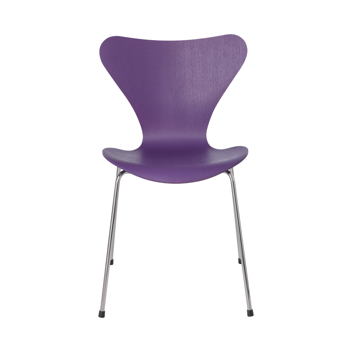 Enhance your interior with the striking silhouette of the Series 7 Chair in coloured ash with a chrome base, designed in 1955 by Arne Jacobsen and produced by prestigious manufacturer, Fritz Hansen. Also known as the 3107 Chair, the Series 7 Chair showcases one of the most iconic silhouettes in furniture history. With its signature curved backrest, the chair has become an instantly recognisable feature of modernist mid-century furniture design. Fritz Hansen’s bestselling chair, the composition of the Series 7 represents the culmination of the then-revolutionary lamination technique, with its pressure moulded ash plywood frame crafted to showcase the many possibilities of the lamination process. Elevated on stackable, chrome-plated steel legs and available in multiple colour finishes, the Series 7 Chair remains a timeless example of Modernist furniture design.