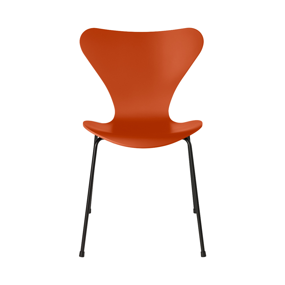 Enhance your interior with the striking silhouette of the Series 7 Chair in coloured lacquered ash with a black base, designed in 1955 by Arne Jacobsen and produced by prestigious manufacturer, Fritz Hansen. Also known as the 3107 Chair, the Series 7 Chair showcases one of the most iconic silhouettes in furniture history. With its signature curved backrest, the chair has become an instantly recognisable feature of modernist mid-century furniture design. Fritz Hansen's bestselling chair, the composition of the Series 7 represents the culmination of the then revolutionary lamination technique, with its pressure moulded ash plywood frame crafted to showcase the many possibilities of the lamination process. Elevated on stackable, chrome-plated steel legs and available in multiple colour finishes, the Series 7 Chair remains a timeless example of Modernist furniture design.