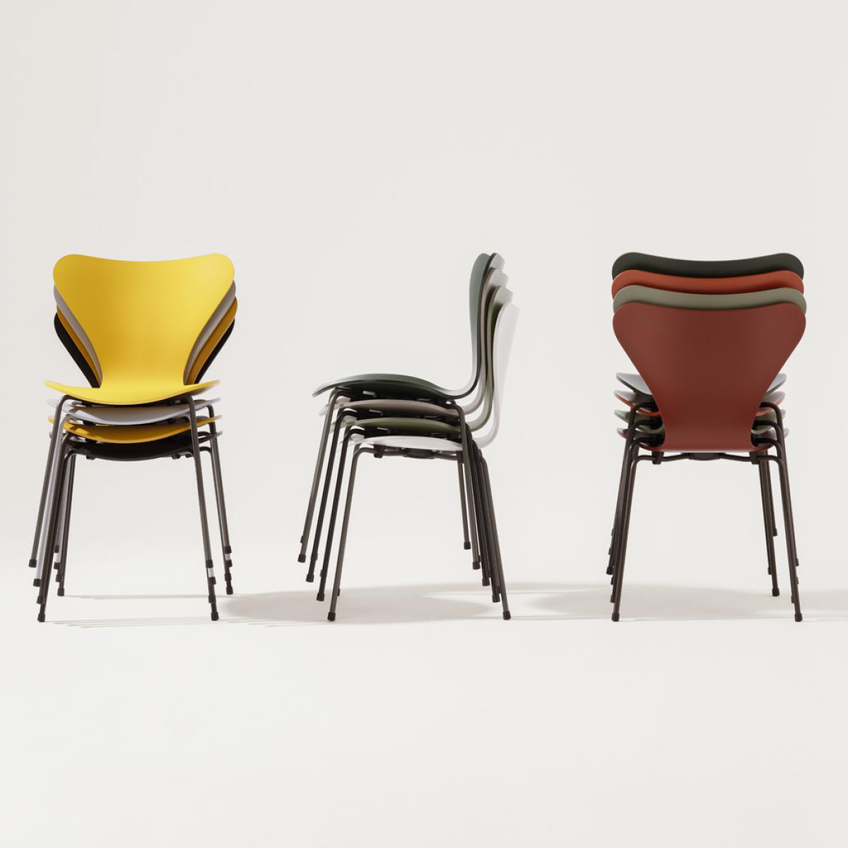 Enhance your interior with the striking silhouette of the Series 7 Chair in coloured lacquered ash with a silver-grey base, designed in 1955 by Arne Jacobsen and produced by prestigious manufacturer, Fritz Hansen. Also known as the 3107 Chair, the Series 7 Chair showcases one of the most iconic silhouettes in furniture history. With its signature curved backrest, the chair has become an instantly recognisable feature of modernist mid-century furniture design. Fritz Hansen's bestselling chair, the composition of the Series 7 represents the culmination of the then-revolutionary lamination technique, with its pressure moulded ash plywood frame crafted to showcase the many possibilities of the lamination process. Elevated on stackable, chrome-plated steel legs and available in multiple colour finishes, the Series 7 Chair remains a timeless example of Modernist furniture design.