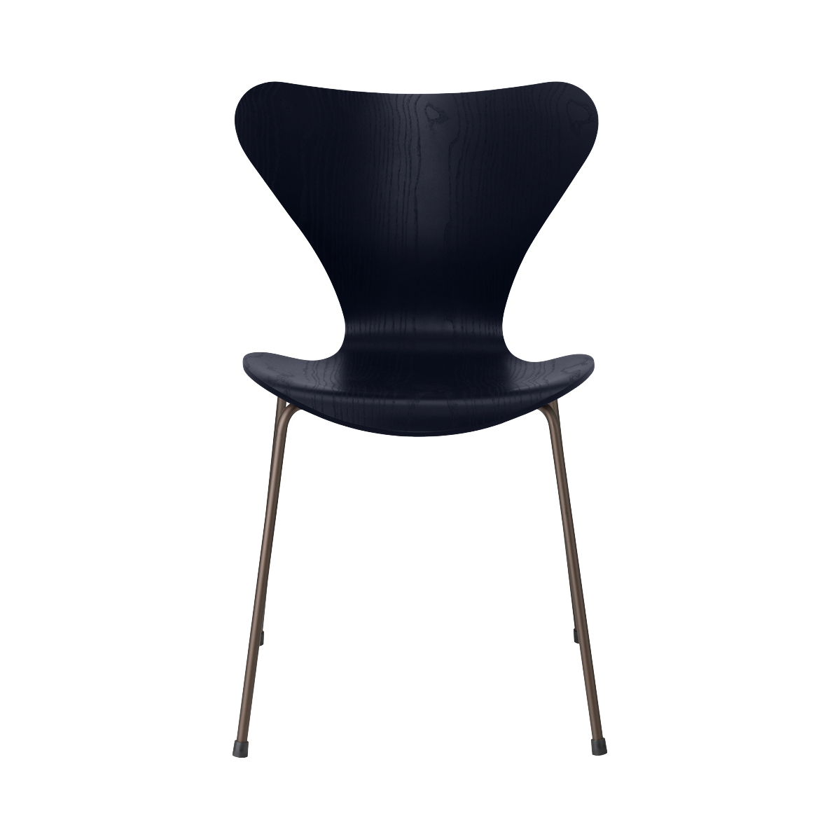 Enhance your interior with the striking silhouette of the Series 7 Chair in coloured ash with a brown-bronze base, designed in 1955 by Arne Jacobsen and produced by prestigious manufacturer, Fritz Hansen. Also known as the 3107 Chair, the Series 7 Chair showcases one of the most iconic silhouettes in furniture history. With its signature curved backrest, the chair has become an instantly recognisable feature of modernist mid-century furniture design. Fritz Hansen's bestselling chair, the composition of the Series 7 represents the culmination of the then revolutionary lamination technique, with its pressure moulded ash plywood frame crafted to showcase the many possibilities of the lamination process. Elevated on stackable, chrome-plated steel legs and available in multiple colour finishes, the Series 7 Chair remains a timeless example of Modernist furniture design.