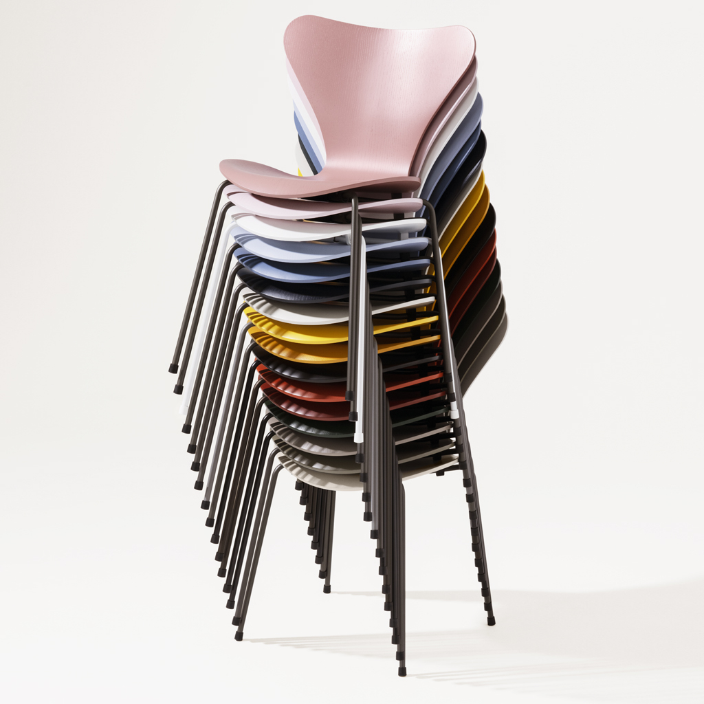 Enhance your interior with the striking silhouette of the Series 7 Chair in coloured ash with a brown-bronze base, designed in 1955 by Arne Jacobsen and produced by prestigious manufacturer, Fritz Hansen. Also known as the 3107 Chair, the Series 7 Chair showcases one of the most iconic silhouettes in furniture history. With its signature curved backrest, the chair has become an instantly recognisable feature of modernist mid-century furniture design. Fritz Hansen's bestselling chair, the composition of the Series 7 represents the culmination of the then revolutionary lamination technique, with its pressure moulded ash plywood frame crafted to showcase the many possibilities of the lamination process. Elevated on stackable, chrome-plated steel legs and available in multiple colour finishes, the Series 7 Chair remains a timeless example of Modernist furniture design.
