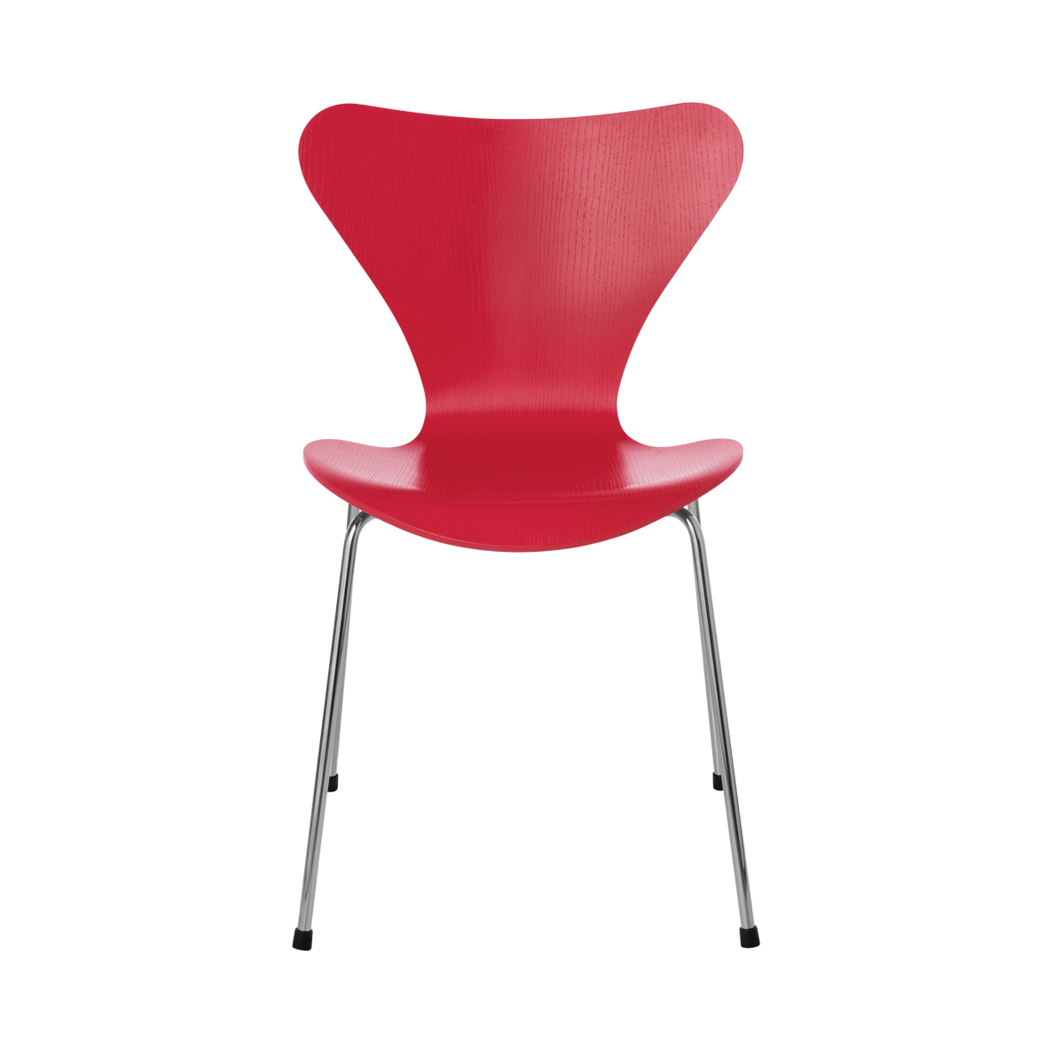 Enhance your interior with the striking silhouette of the Series 7 Chair in opium red, designed in 1955 by Arne Jacobsen and produced by prestigious manufacturer, Fritz Hansen. Also known as the 3107 Chair, the Series 7 Chair showcases one of the most iconic silhouettes in furniture history. With its signature curved backrest, the chair has become an instantly recognisable feature of modernist mid-century furniture design. Fritz Hansen's bestselling chair, the composition of the Series 7 represents the culmination of the then revolutionary lamination technique, with its pressure moulded plywood frame crafted to showcase the many possibilities of lamination. Elevated on stackable, chrome-plated steel legs, and available in a variety of finishes, the Opium Red Series 7 - 3107 Chair remains a timeless example of Modernist furniture design.