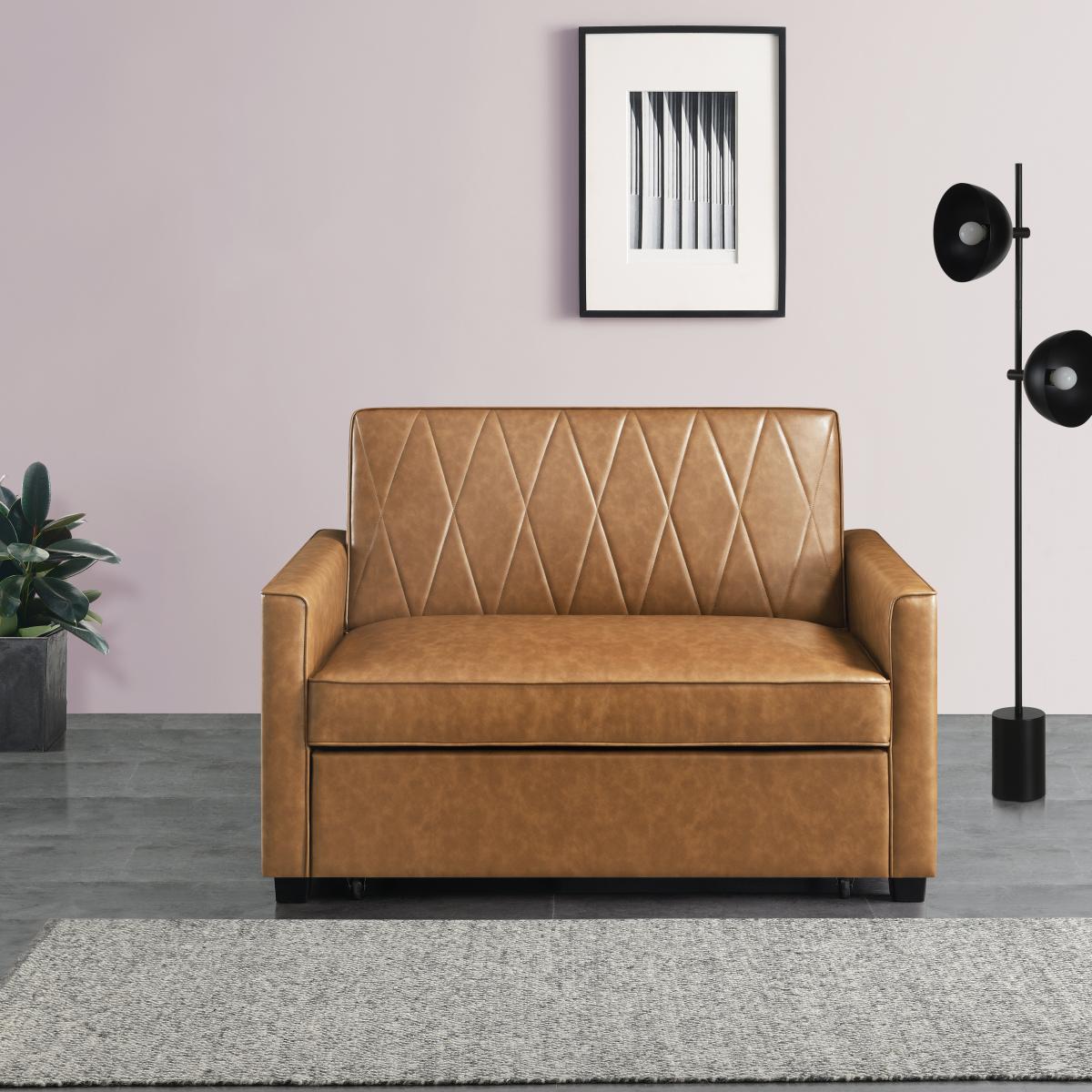 * Faux Leather Sofa Bed* Clic Clac Mechanism* Foam Filled* 2 Seater Sofa, Double Mattress This classic sofa bed seamlessly combines style with functionality, making it the perfect choice for maximising limited space. Its multi-functional design allows it to serve as both a sofa and a bed, making it an ideal solution for accommodating overnight guests. The seat padding, made with impressive 5cm foam, ensures ultimate comfort whether you're sitting or sleeping. The innovative combination of S springs and thick layers of foam provides a level of comfort akin to a high-quality mattress, guaranteeing a restful night's sleep. The sofa bed features a user-friendly clic clac mechanism, making the transition from sofa to bed effortless and hassle-free.