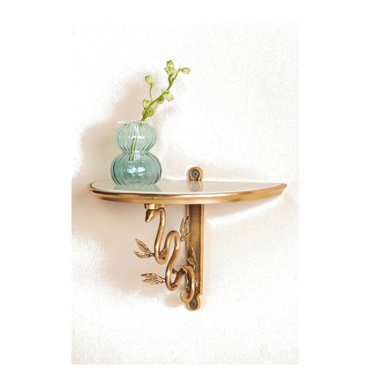 With a serpent figure rendered from brass, this marble-topped shelf is the perfect surface for displaying anything from souvenirs to floral arrangements. * Hanging hardware included * Cast brass, Marble * Wipe clean with soft dry cloth * Imported