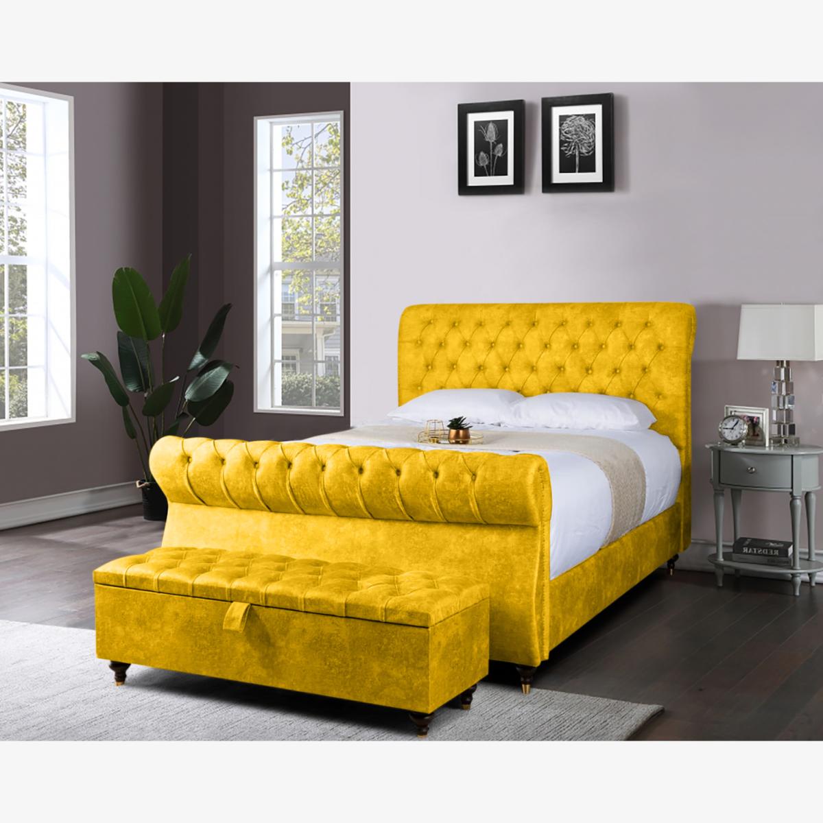Serra and Ottoman Plush Velvet Bed Frame - Mustard / Superking