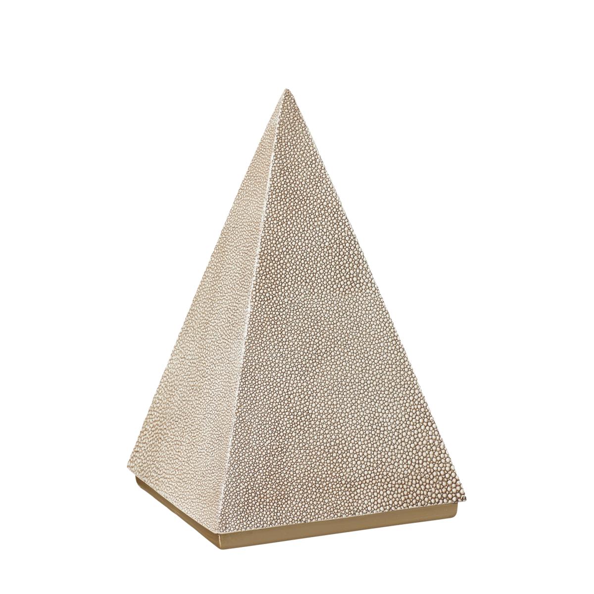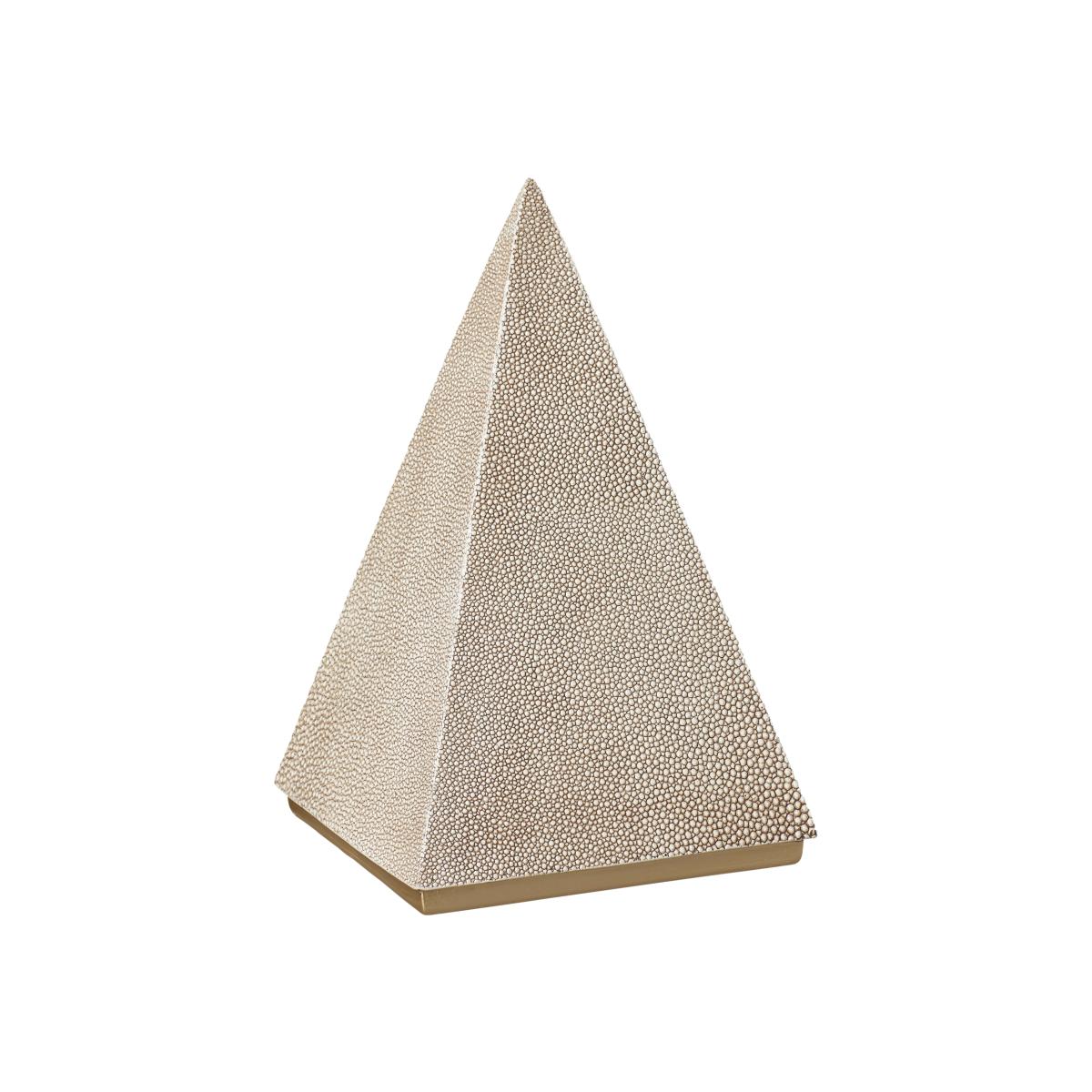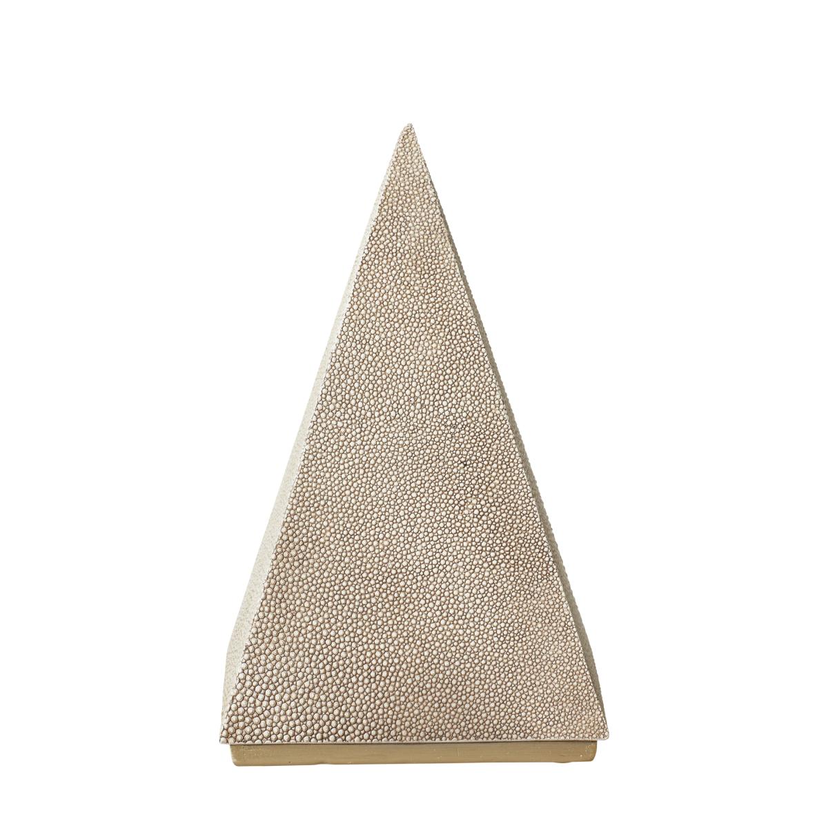Our faux shagreen furniture and accessories are some of our best sellers. Previously, the collection covered large and practical items, but we decided to launch some fun, decorative pieces in this timeless finish, starting with a taupe cross and pyramid decoration.
