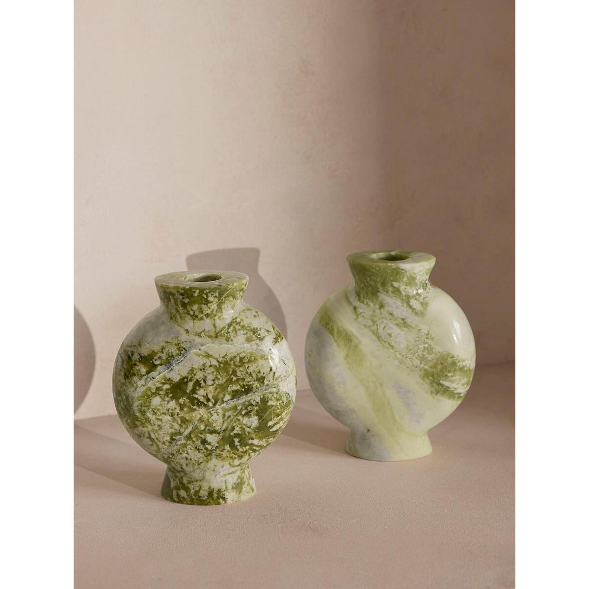 Our Sesso vase is inspired by the classic marble finishes seen at Soho House Rome. Wth a wide, rounded shape and short neck, it features apple jade marble to create beautiful tones of colour. As water is not recommended inside, we suggest using it as a statement piece of decor in the home or with a dried flower arrangement. Wide marble vase Apple jade marble Natural variation in the stone means no two are the same Rounded base Short neck Water not recommended inside Inspired by Soho House Rome