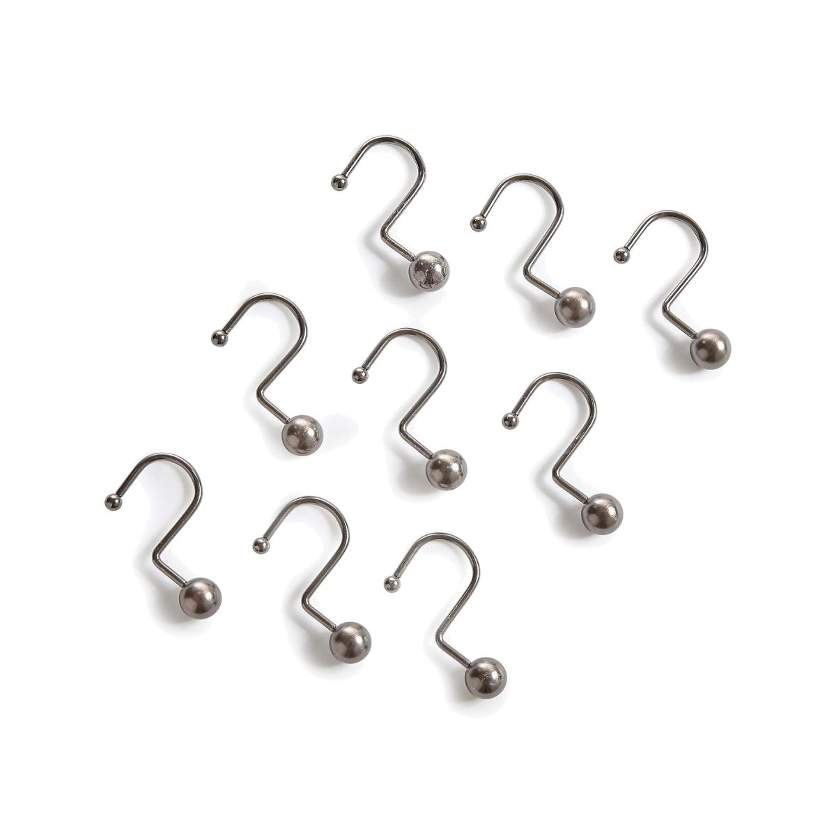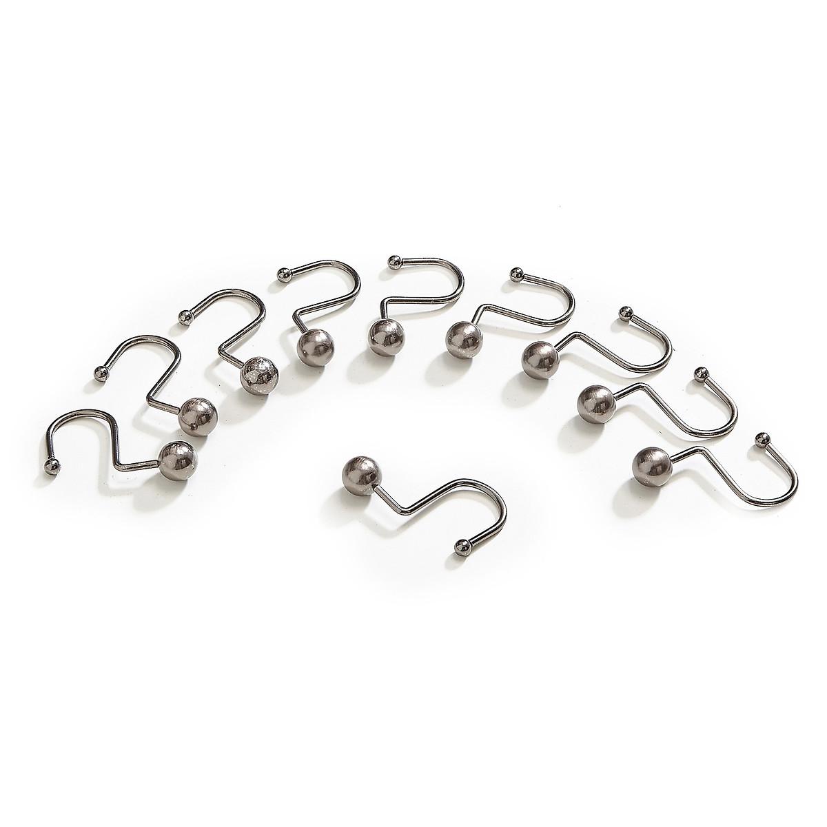 Set of 10 Copalme curtain hooks. An unusual and elegant method of attaching the Lavezzi curtains with little eyelets to a rail. These are very easy to use with their S shape and ball at one end: just pass the hook through the curtain eyelet and then hook it onto the rail. Easy to put on and take off, they make it easy to take down curtains without having to dismantle the curtain pole. Team them up with the Lavezzi curtains available on this site. Product Details • Grey gun metal stainless steel • For curtain poles with a maximum diameter of 2.5cm. Dimensions • L5 x H5cm